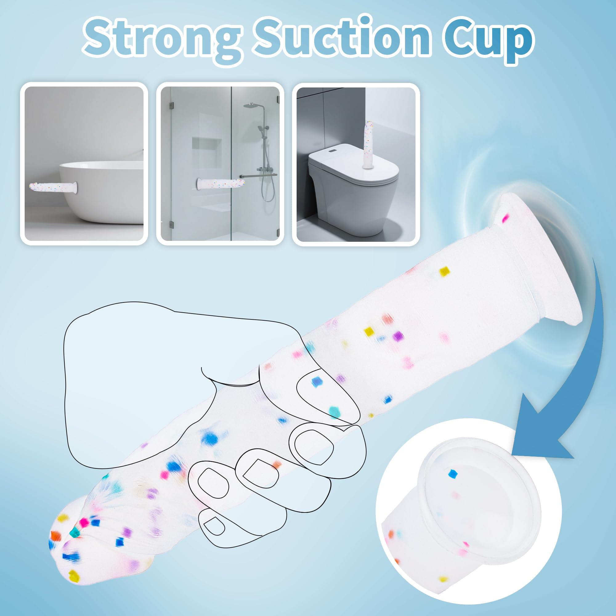 28cm Confetti Silikon Groß Dildo mit Realistische Design, Flacher Saugfuß für Bequemes Spielen ohne Hände, Anal Dildo für Vagina, G-Spot und Prostata