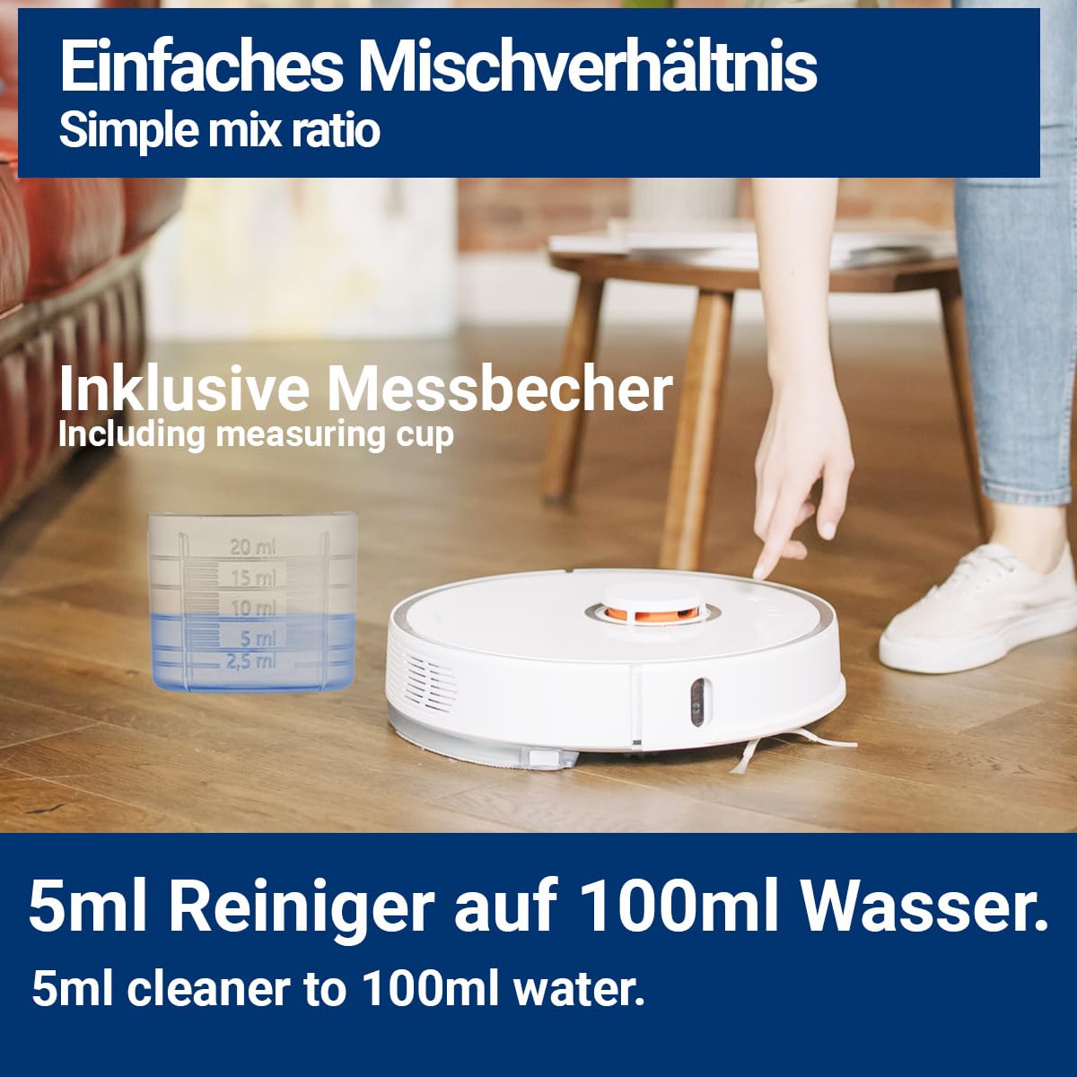 12x 1000ml Wischroboter Reinigungsmittel Konzentrat | extra frischer Duft | streifenfrei & schaumarm + Dosierbecher | Bodenreiniger, Saugwischer, Saugroboter u.v.m.