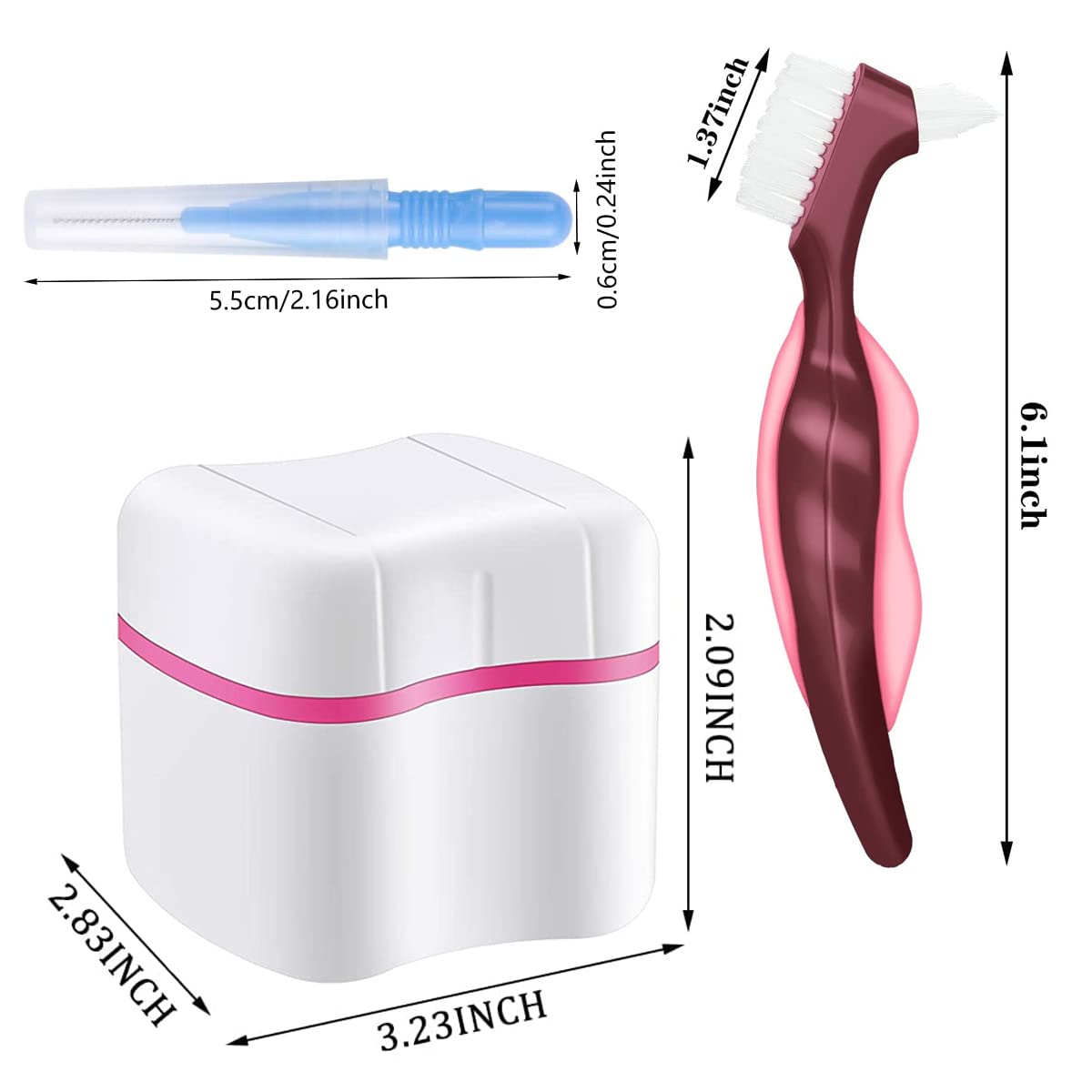 2 Dentures Case, Prothesendose, 4 pcs Prothesenbürste Set, Zahnprothesen behälter, Prothesenpflegeset, Prosthesis Tooth Dental False Teeth Storage Box, Prothesenkoffer mit Prothesenreinigungsbürste