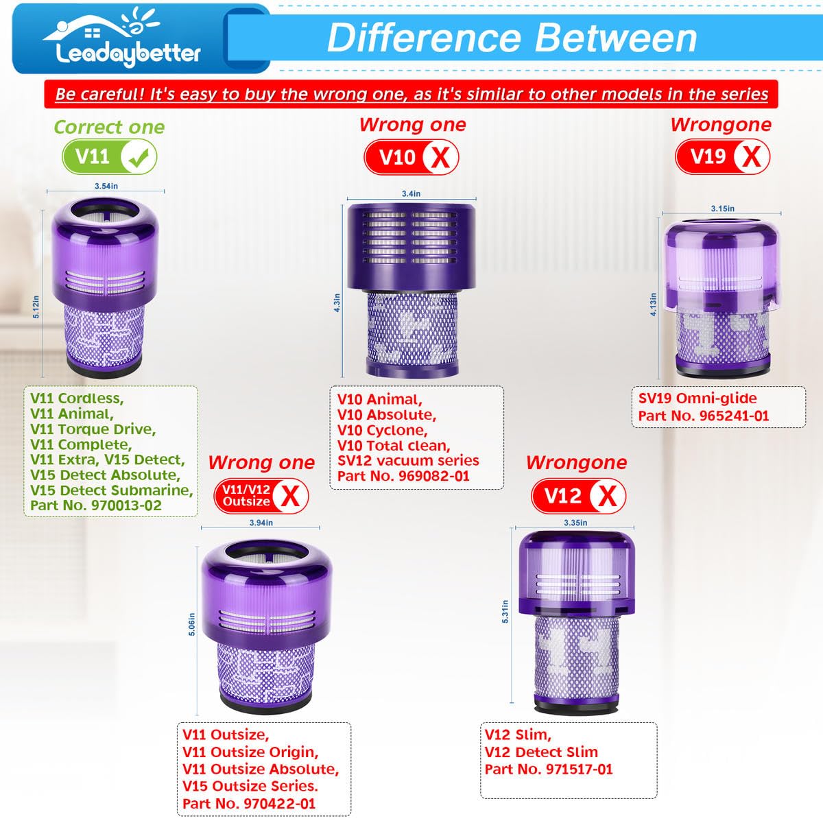 Kompatibles Modell: Dieser V11-Filterersatz passt für Dyson V11 Animal, V11 Torque Drive und V15 Detect schnurlosen Staubsauger. Vergleichbar mit Teilenummer 970013-02. Nicht geeignet für Dyson V11 Outsize Staubsauger. Bitte bestätigen Sie Ihr Zubehörmodell vor der Bestellung.