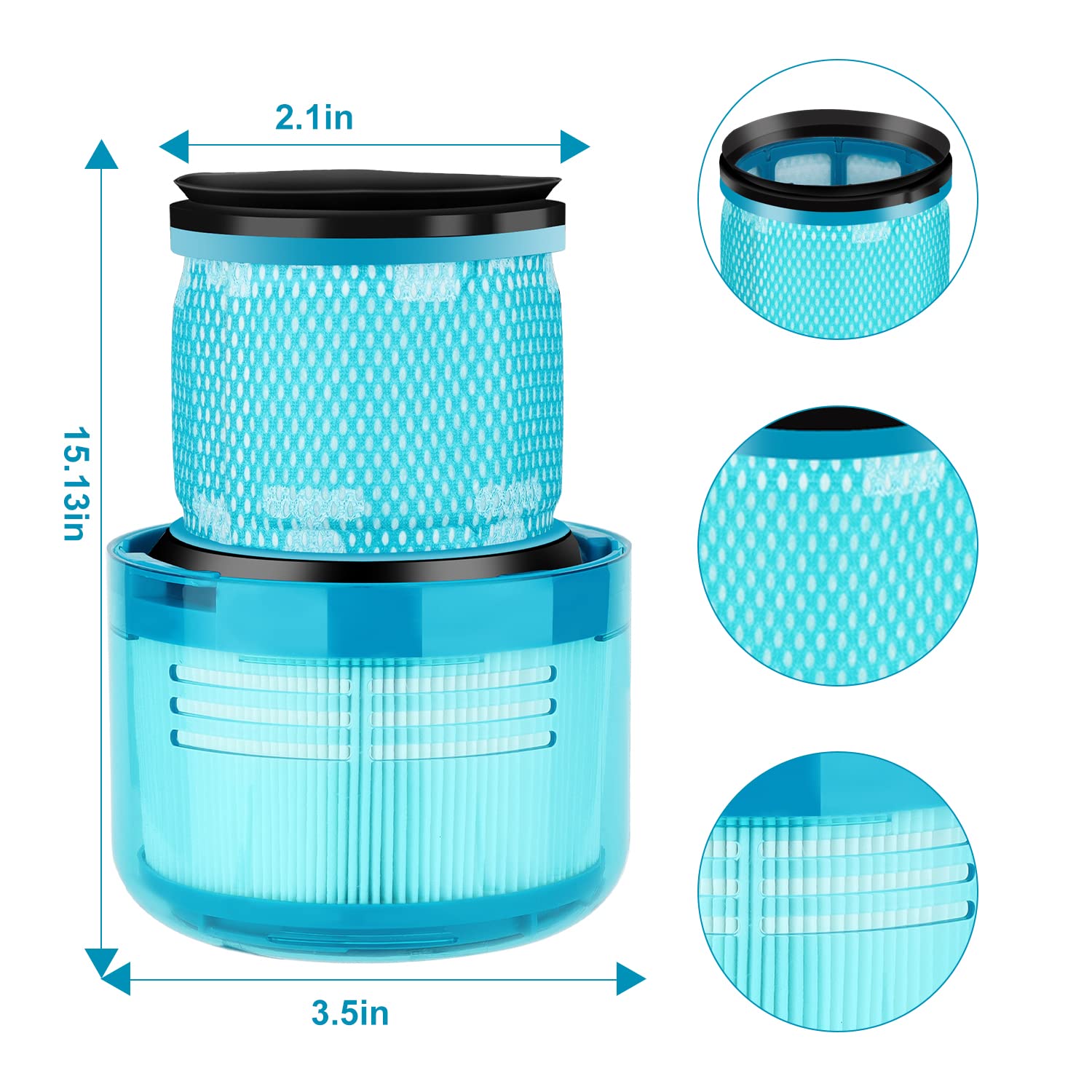 2 Stück Ersatzteile Filter für Dyson V15 V11 SV14 SV22 Detect Absolute Animal Extra Pro Torque Drive Akku Staubsauger Ersatzfilter, Compare to Part # 970013-02