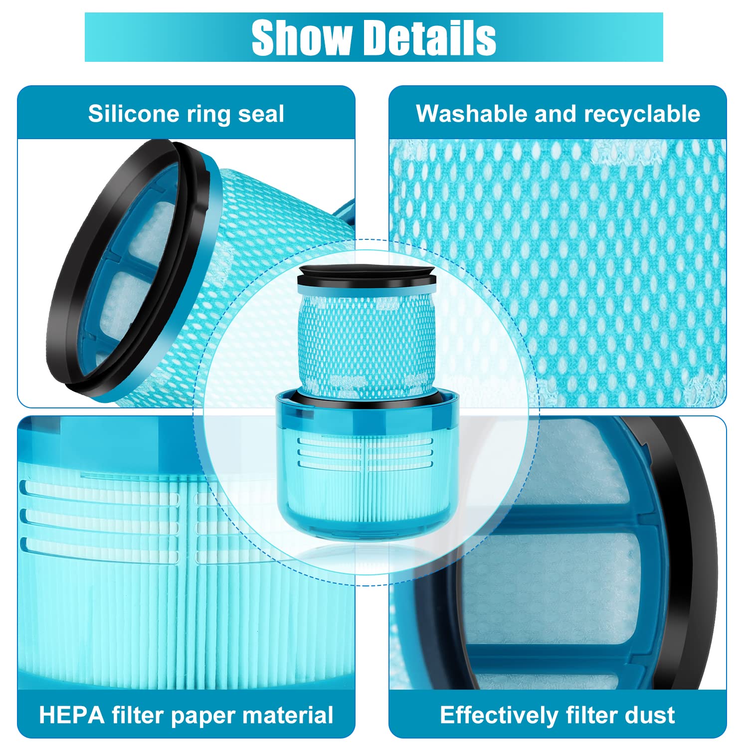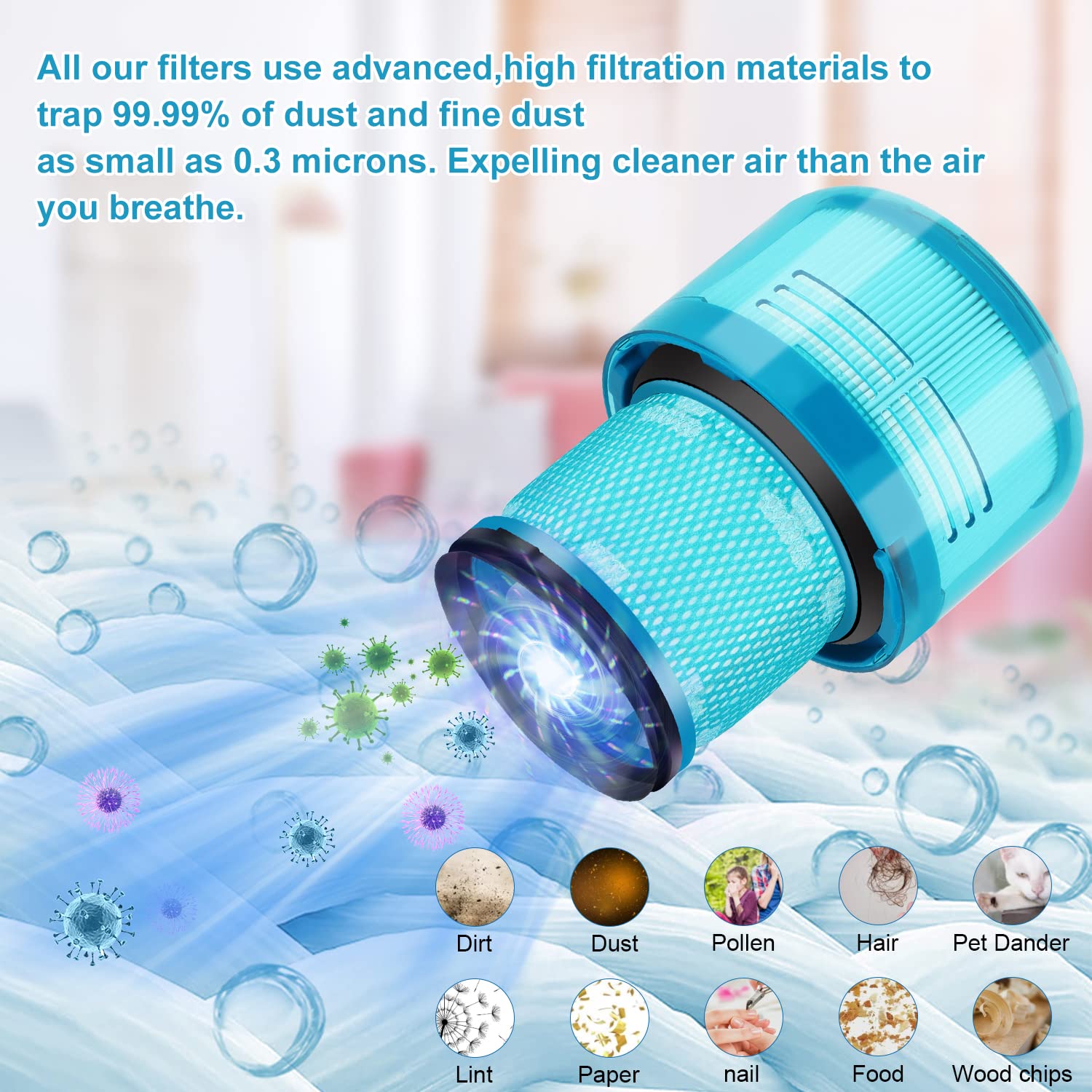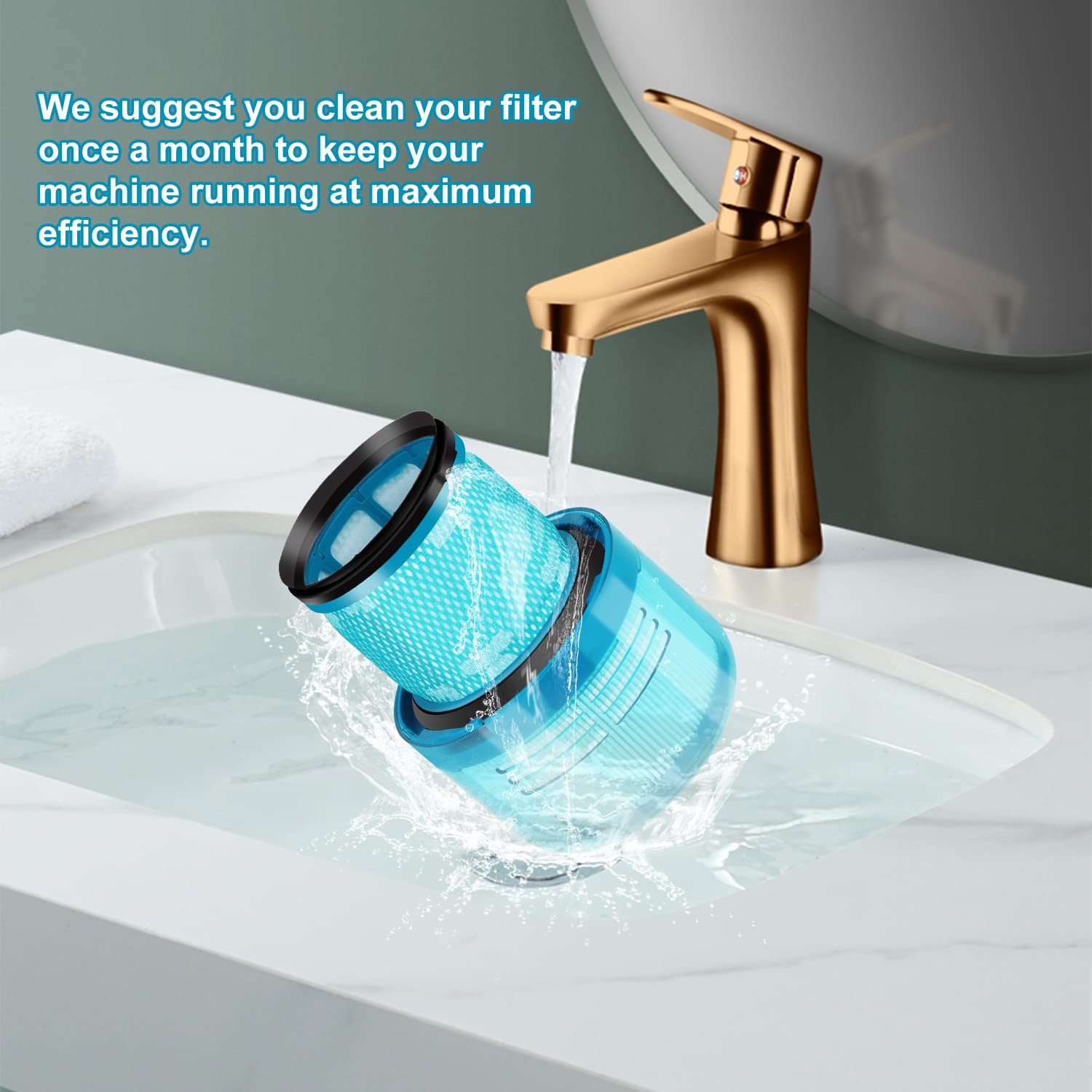 GEWASCHEN UND WIEDERVERWENDBAR: Wir empfehlen, den Filter einmal im Monat zu waschen und den Filter alle 3 Monate zu wechseln. Um das Innere des Staubsaugers sauber und staubfrei zu halten.