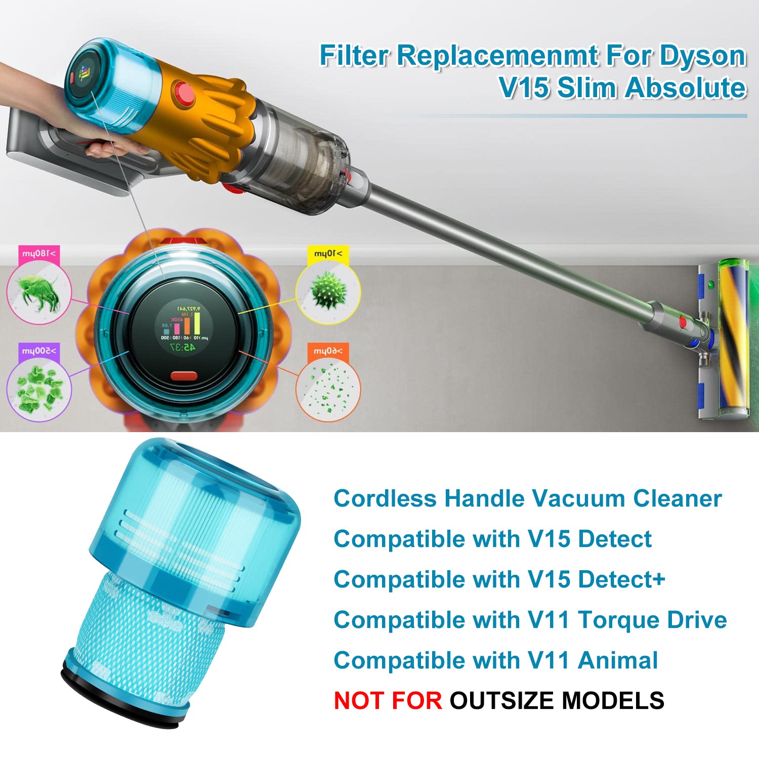 Perfekt kompatibel mit Dyson V15 V11 SV14 Cyclone Animal Absolute, Ersatzteile # DY-970013-02.