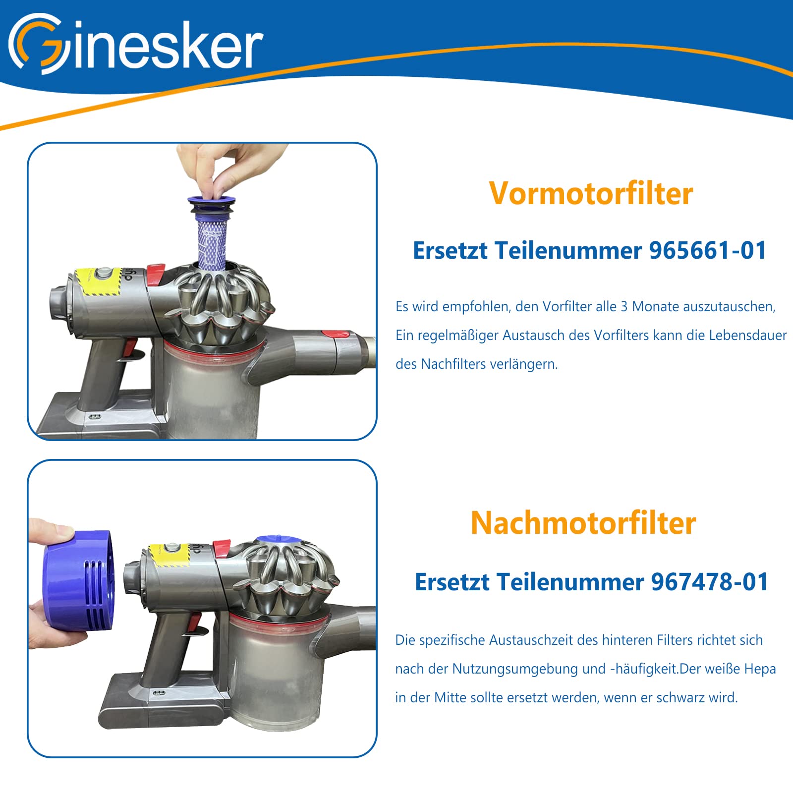 V8 Filter für Dyson 2 Stück V7 V8 HEPA-Nachmotorfilter Kit & 2 Vorfilter Ersatzfilter für Dyson V7 V8 Animal und Absolute Cordless Staubsauger # DY-96566101, DY-96747801