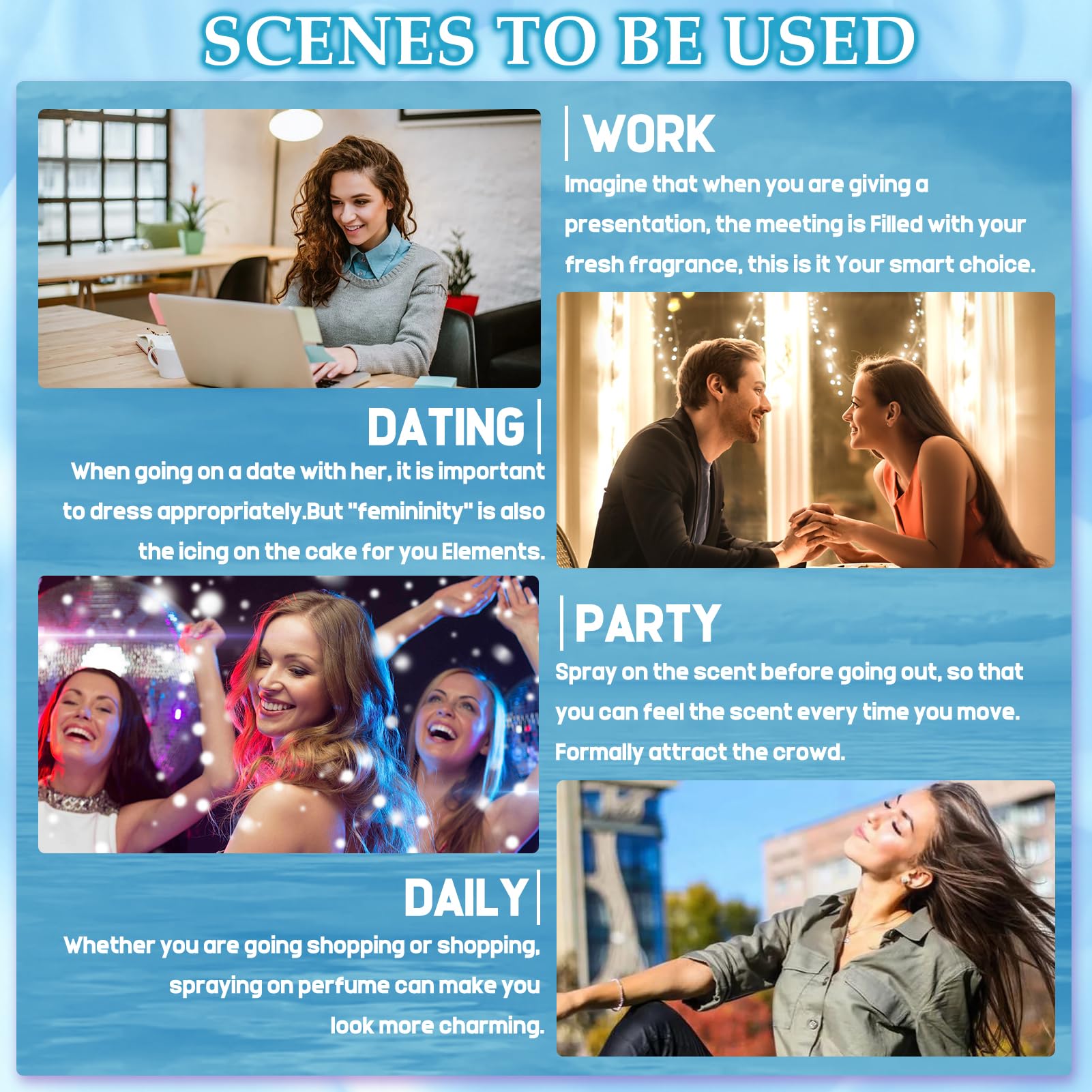 • 【Verführerischer Duft】Dieser Parfum Damen ist sorgfältig mit natürlichen blumigen und fruchtigen Noten kombiniert, um einen subtilen und betörenden Duft zu kreieren, der eine lang anhaltende, verführerische Ausstrahlung ausstrahlt. Er stärkt das Selbstbewusstsein und die Ausstrahlung der Trägerin und verleiht ihr bei jeder Gelegenheit eine einzigartige und unwiderstehliche Aura.