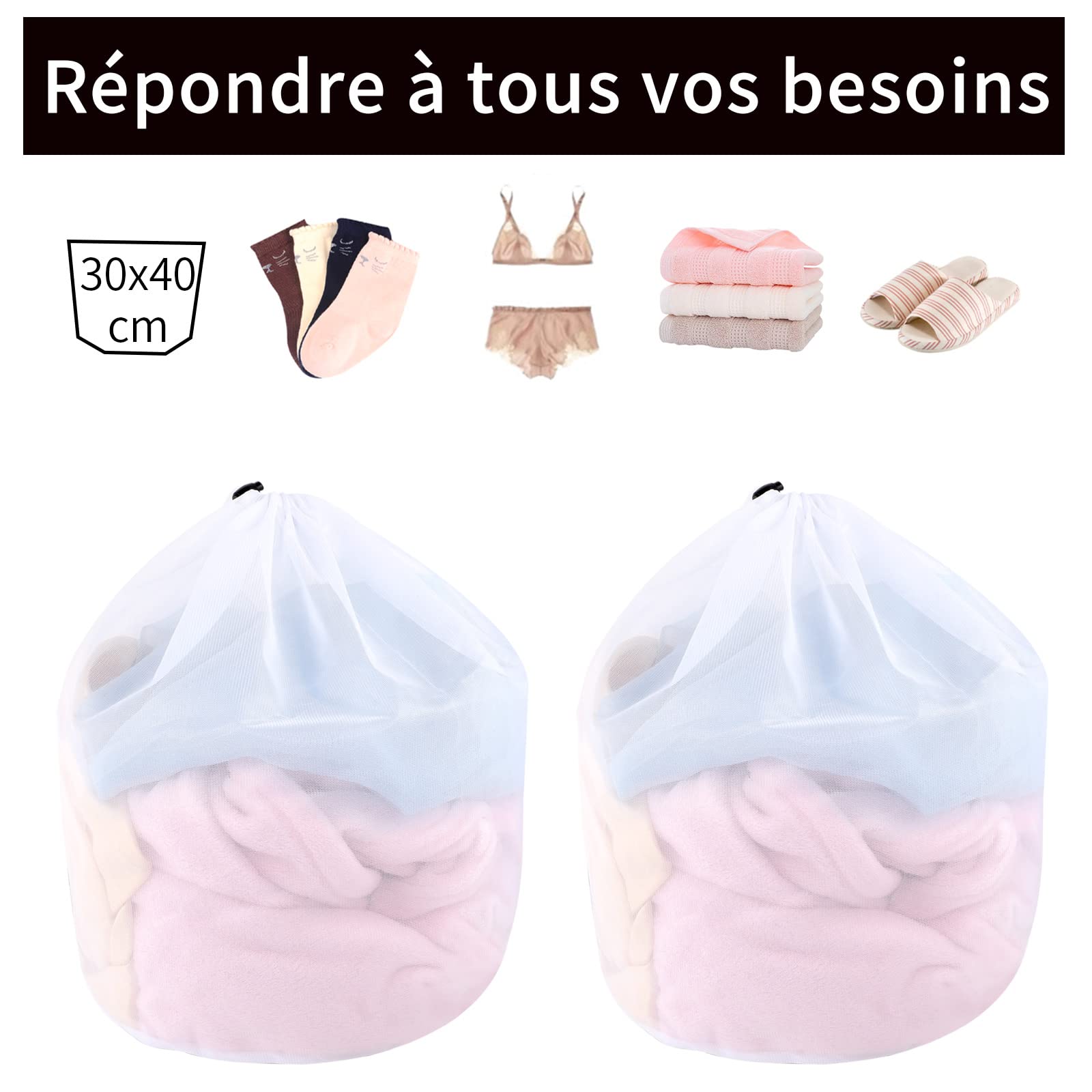 2 Stück Wäschesack, 30 x 40 cm Mesh Wäschebeutel für Waschmaschine Wäschenetz für Waschmaschine Wäschesäcke mit Kordelzug für Babykleidung,Bluse,Unterwäsche,BH,Socken usw