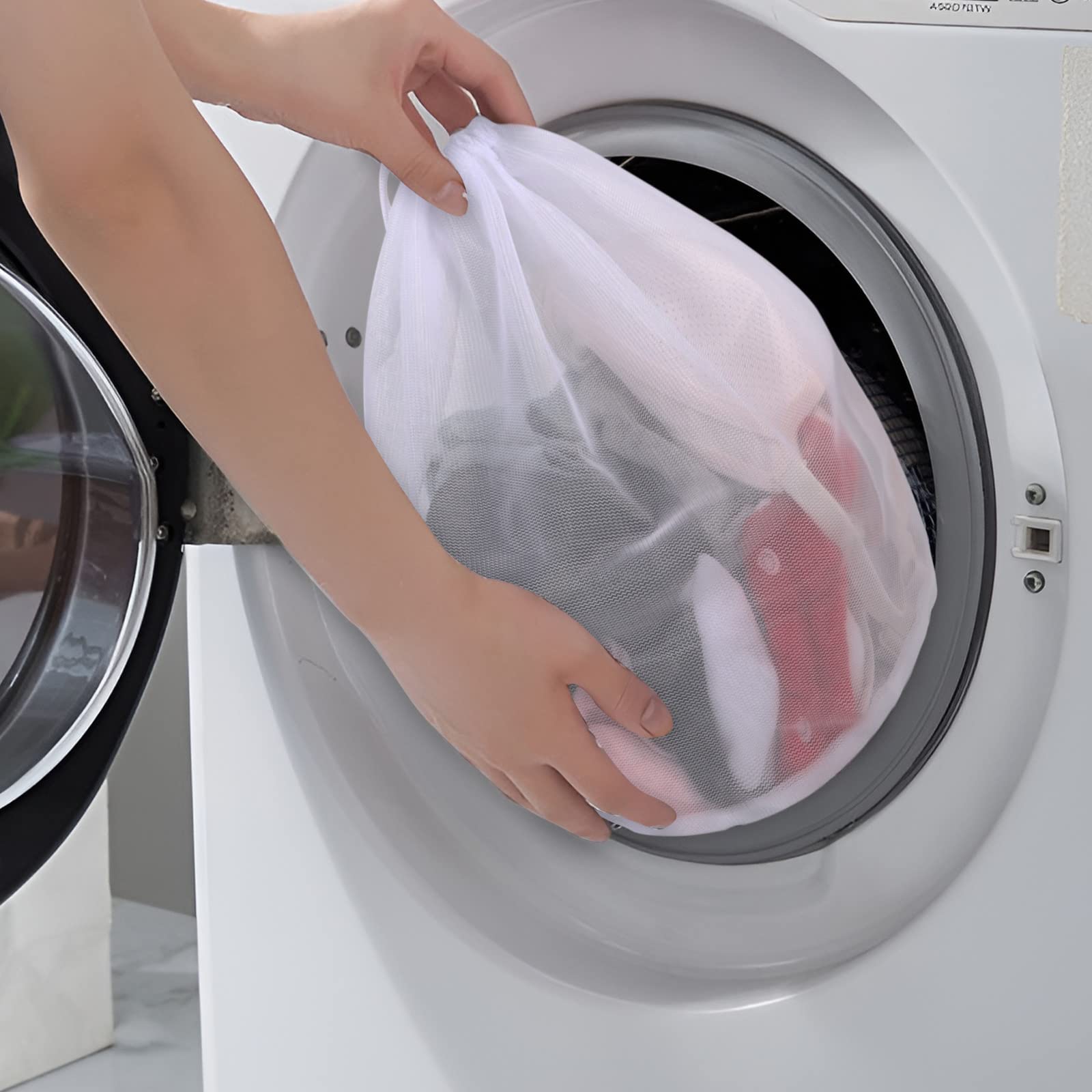 • ????DRAWSTRING DESIGN: Der wäschebeutel für waschmaschine ist mit einem Kordelzug ausgestattet, leicht zu öffnen und zu schliessen, die Kordelzugschnalle und die Schiebeöse sind sehr stark, was das Abrutschen der Kleidung verhindern kann und Ihre Waschmaschine nicht zerkratzt oder beschädigt.