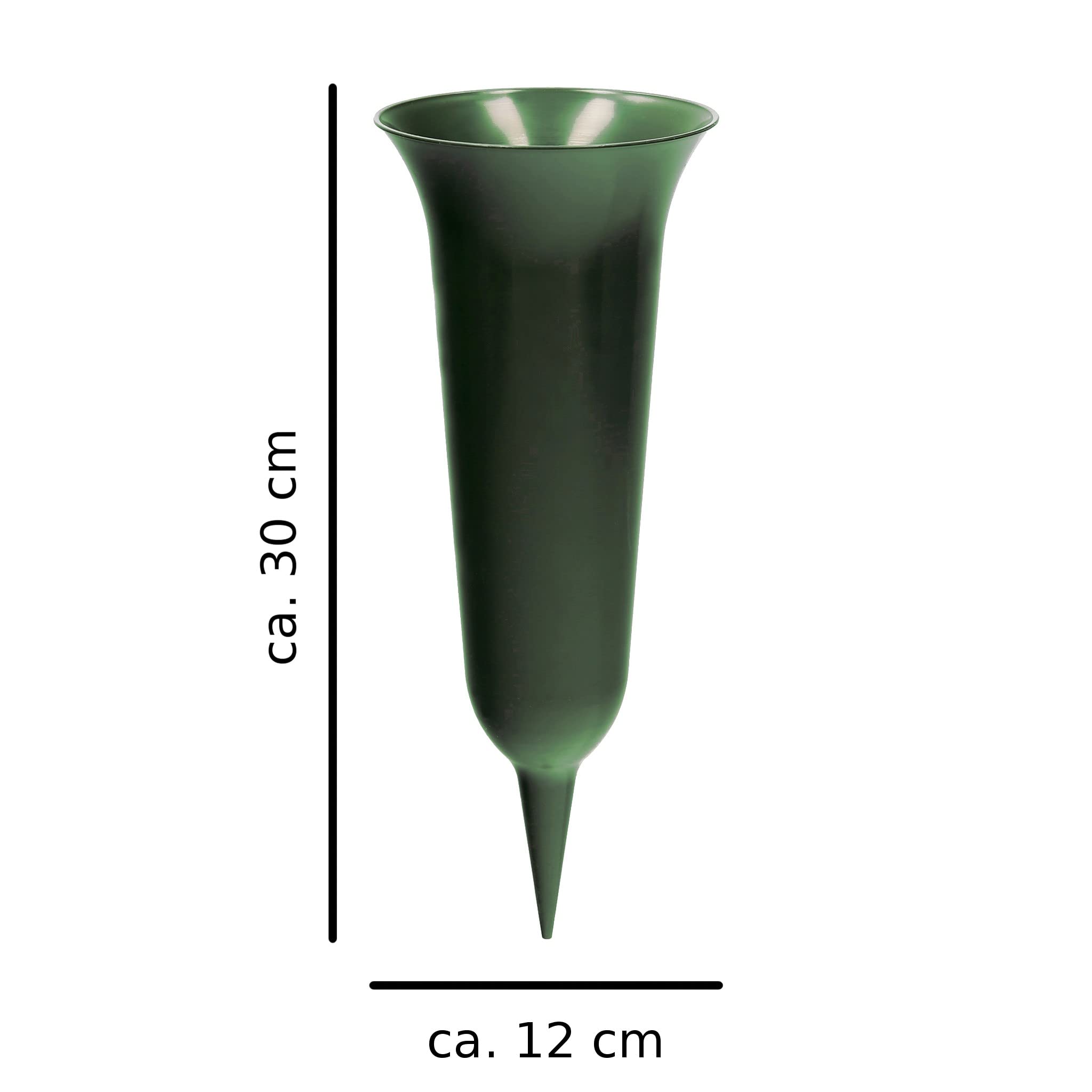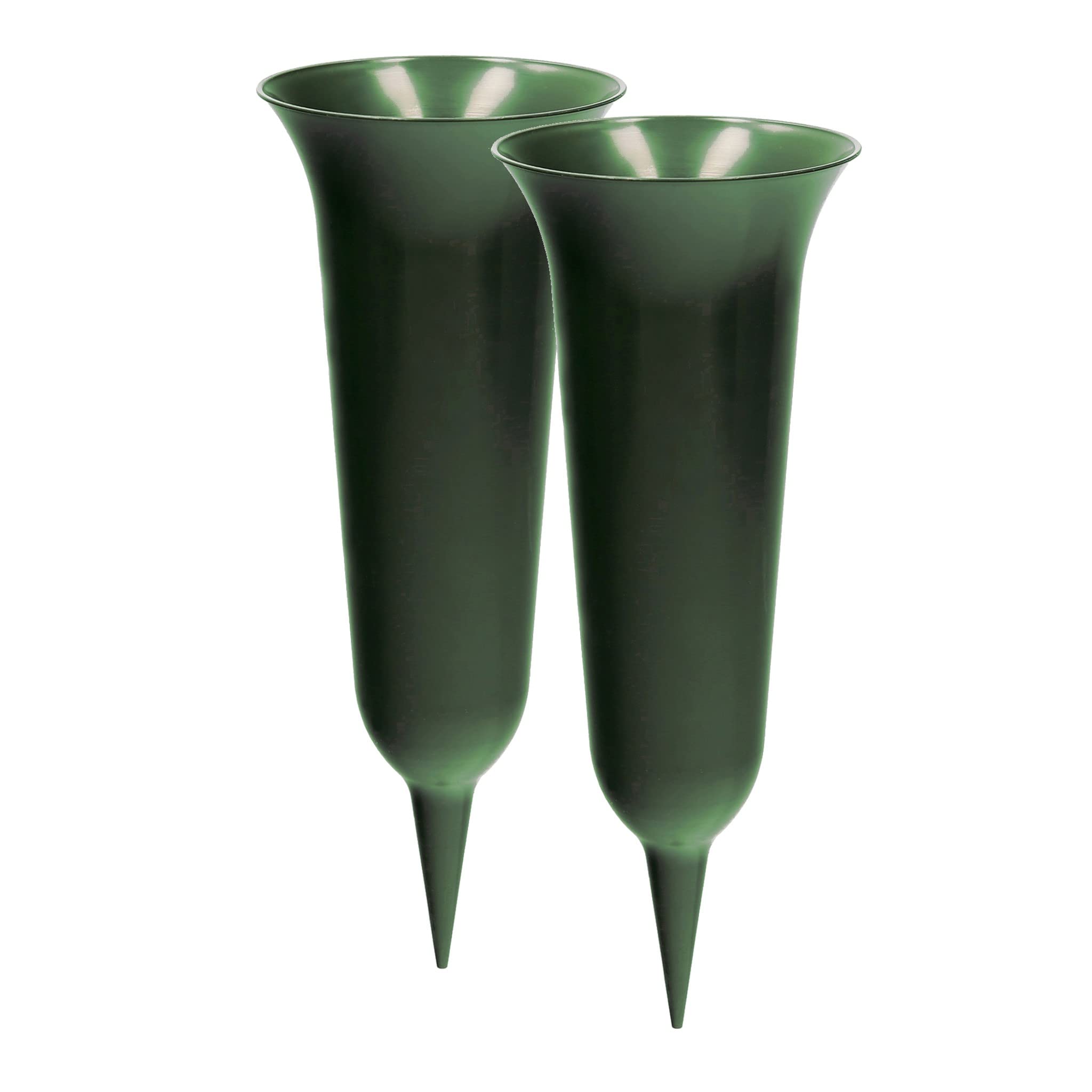2 x Grabvase mit Erdspiess VonBueren | grün | ca. 30 x 12 cm | Friedhofsvase | Grabvasen Friedhof