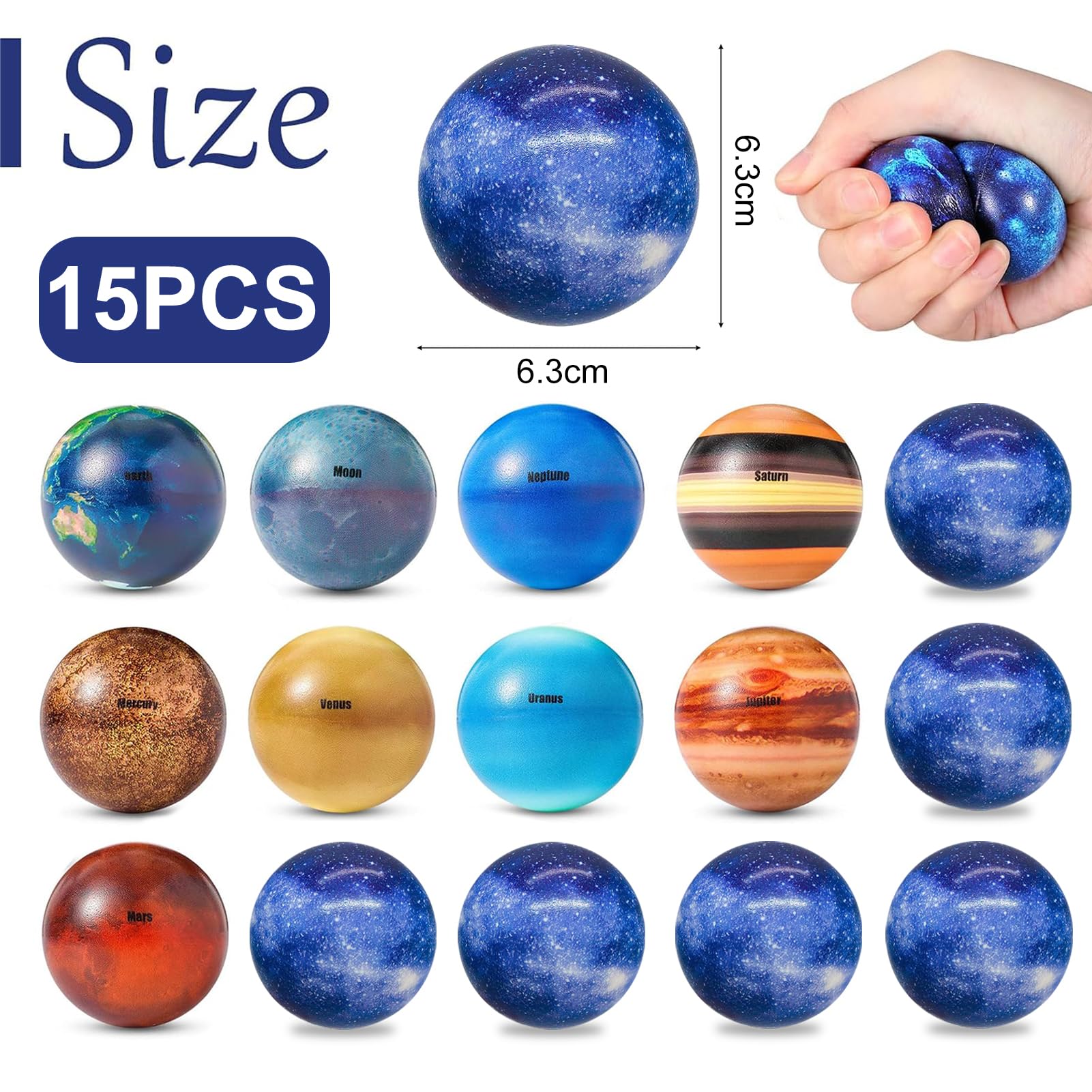 15 Stück Planeten Mini Softbälle,6.3CM Sonnensystem Antistressball,Mini Schaumstoffbälle,Mini Schaum Stressabbau Bälle,Stressabbau Spielzeug,Anti Stress Spielzeug Bälle,Squeeze Bälle für Kinder