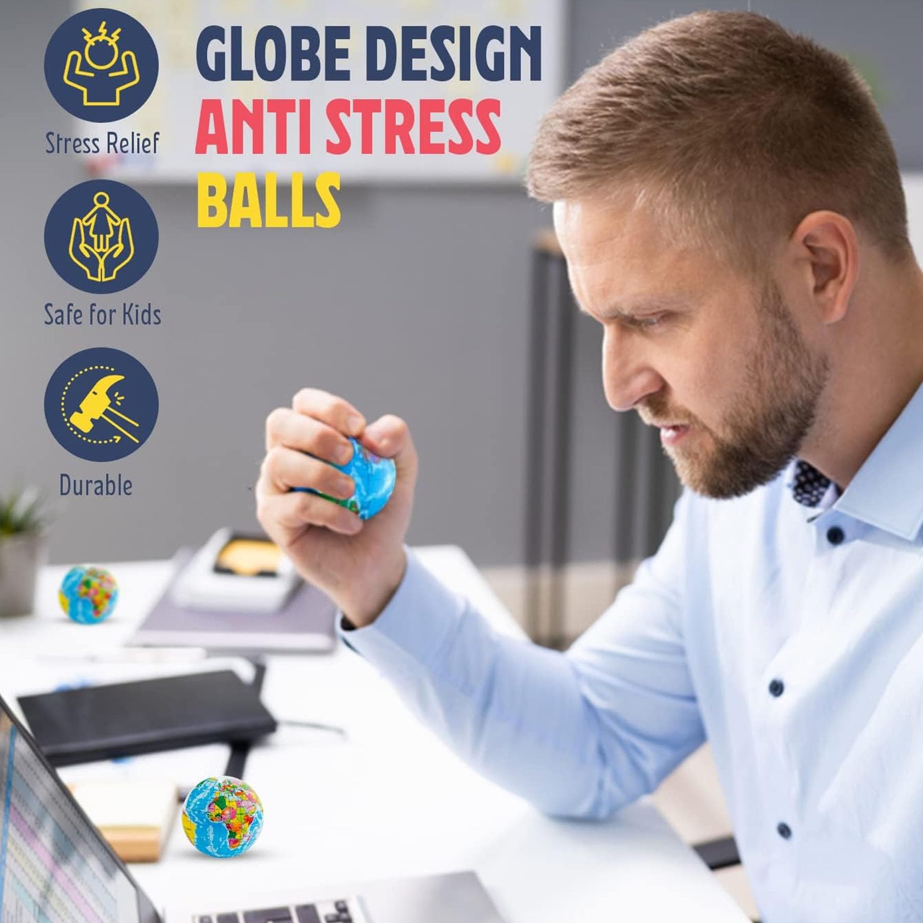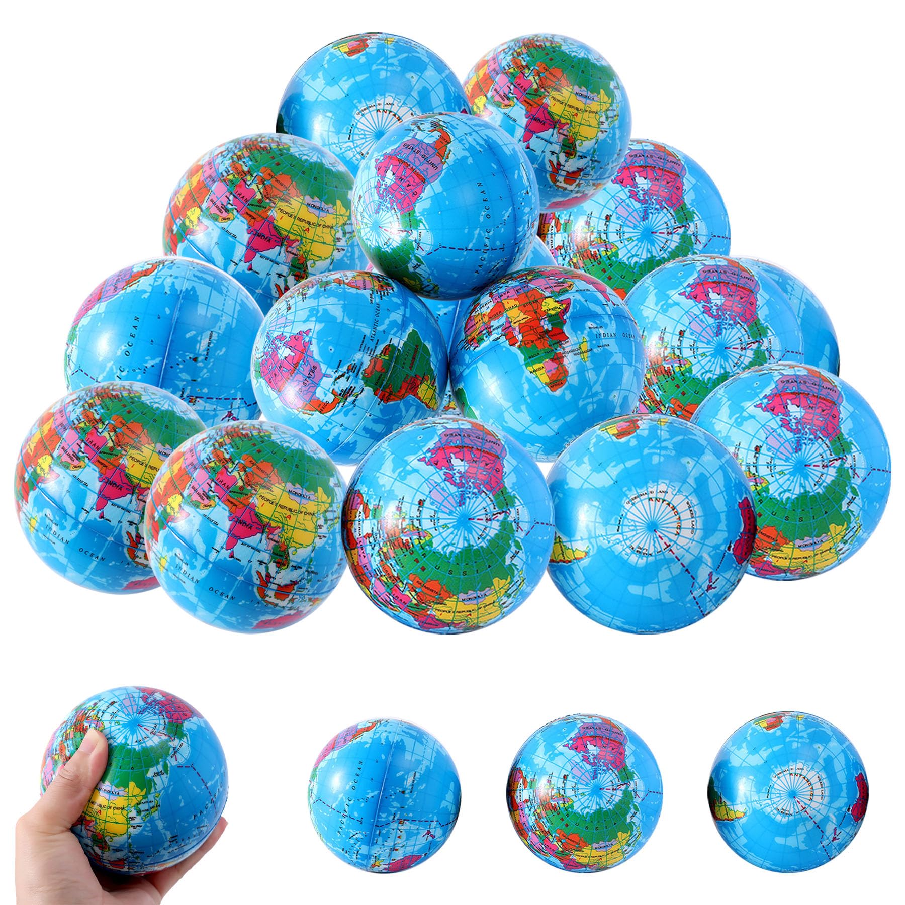 20 Stück Antistressball Weltkugel,5.5CM Stressball Globus Klein,Anti Stress Bälle,Anti Stress Spielzeug Bälle,Mini Globus Kinder Stressball für Kinder Erwachsene