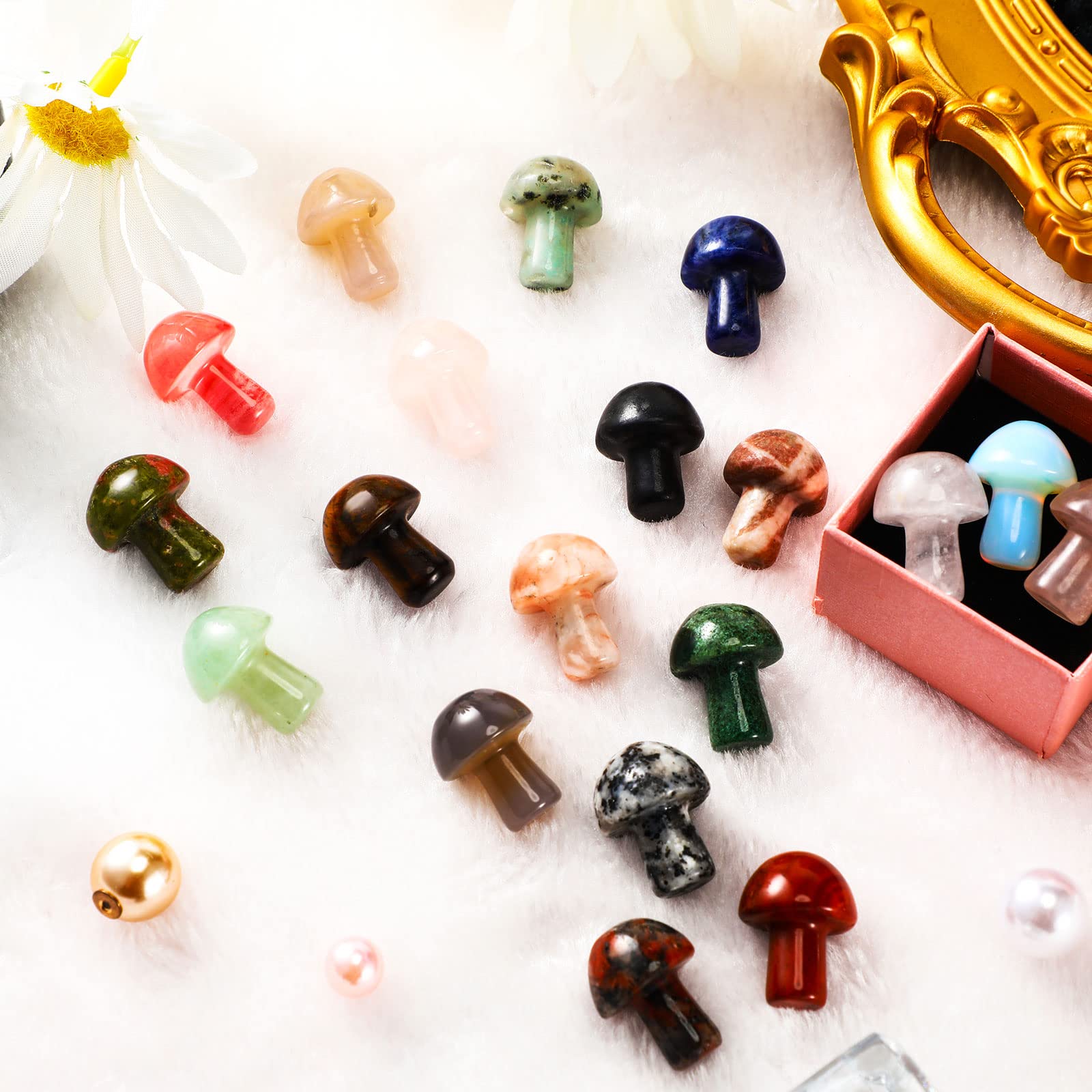 20 Stück Kristall Pilz Skulptur Dekor Hand Herstellung Mini Pilz Form Kristalle Natürlicher Edelstein Quarz Pilz für DIY Meditation Ausgleichender Garten Rasen Haus Blumentopf Dekoration