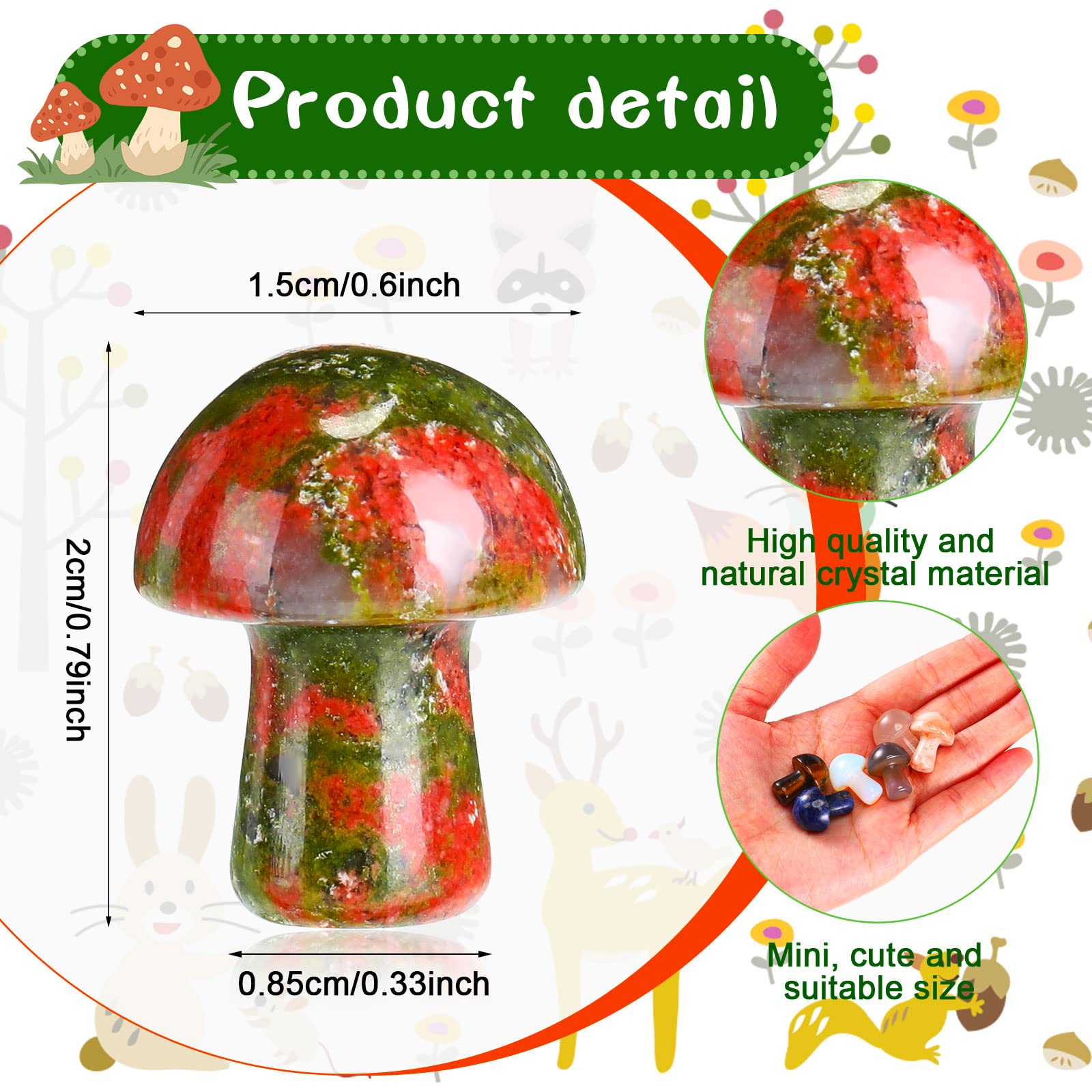 Die Mini-Kristalle sind in Pilzform gestaltet und in verschiedenen Farben kombiniert, schön und realistisch, was eine gute Ergänzung für Ihr Zuhause sein wird und Ihrem Zimmer mehr Farben verleiht.