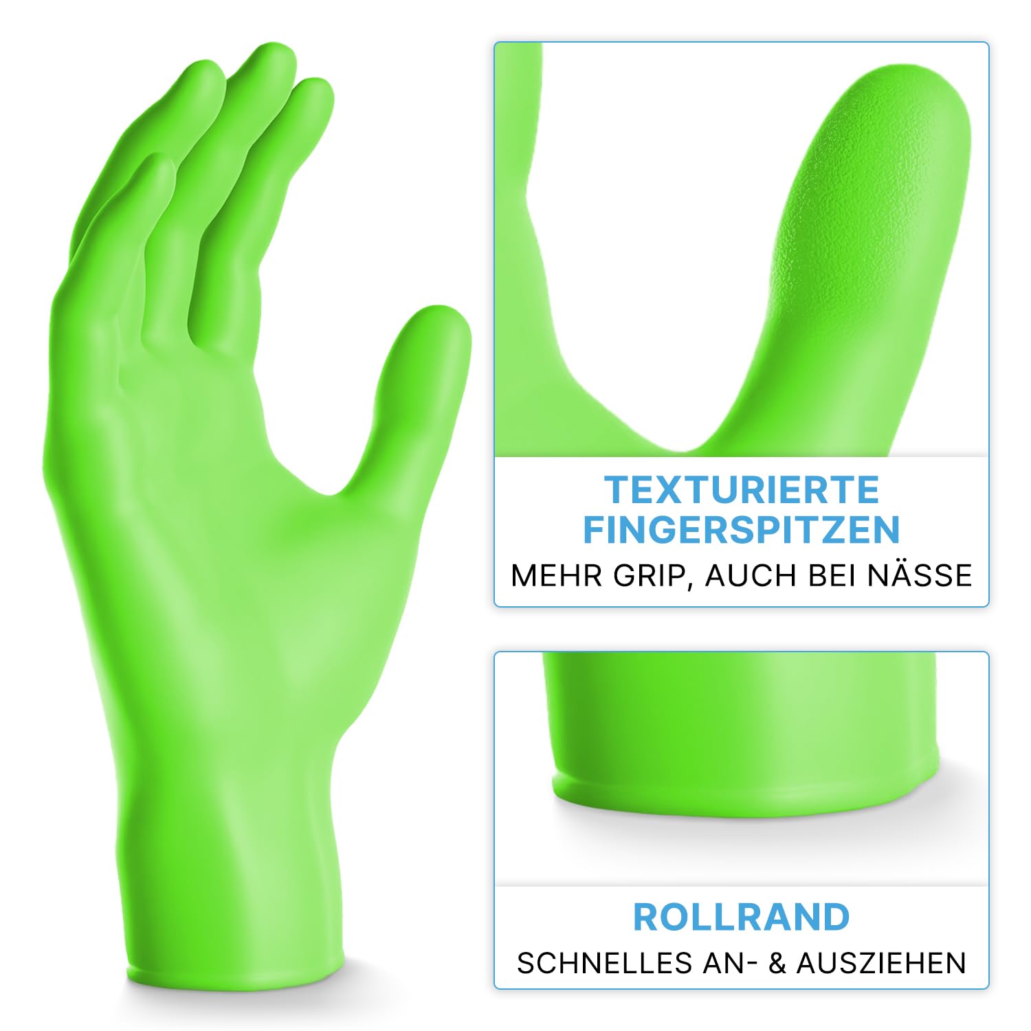 1000x ARNOMED Einweghandschuhe Grün 10x100 Stk, Einmalhandschuhe XS, Nitril Handschuhe Einweg, Nitrilhandschuhe puderfrei, Gummihandschuhe Einweg, Schutzhandschuhe Handschuhe Nitril XS, S, M, L, XL
