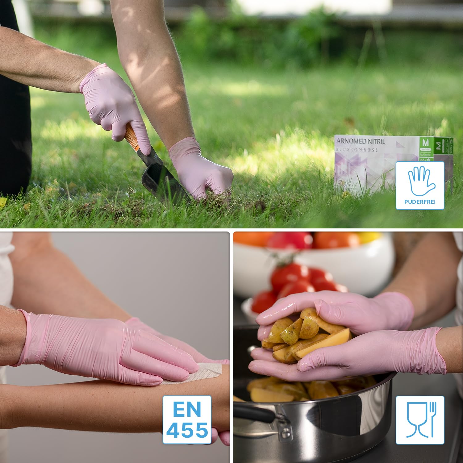 200x ARNOMED Einweghandschuhe Rosa (2x100 Stück), Einmalhandschuhe L, Nitril Handschuhe Einweg, Nitrilhandschuhe puderfrei, Gummihandschuhe Einweg, Schutzhandschuhe, Handschuhe Nitril in XS, S, M, L