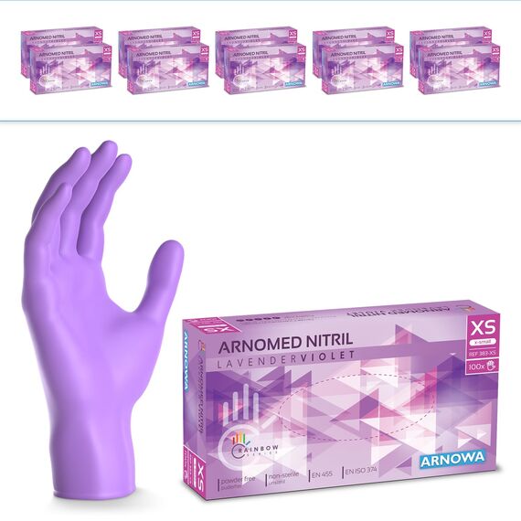 2000 Stück ARNOMED Einweghandschuhe Lila, Einmalhandschuhe XS, Nitril Handschuhe Einweg, Nitrilhandschuhe puderfrei, Gummihandschuhe Einweg, Schutzhandschuhe, Handschuhe Nitril in XS, S, M, L, XL