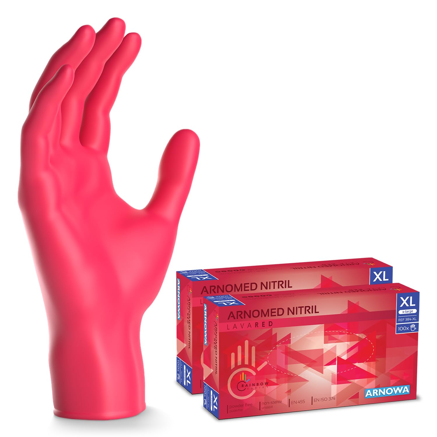 1000x ARNOMED Einweghandschuhe Rot 10x100 Stk, Einmalhandschuhe XL, Nitril Handschuhe Einweg, Nitrilhandschuhe puderfrei, Gummihandschuhe Einweg, Schutzhandschuhe, Handschuhe Nitril XS, S, M, L, XL