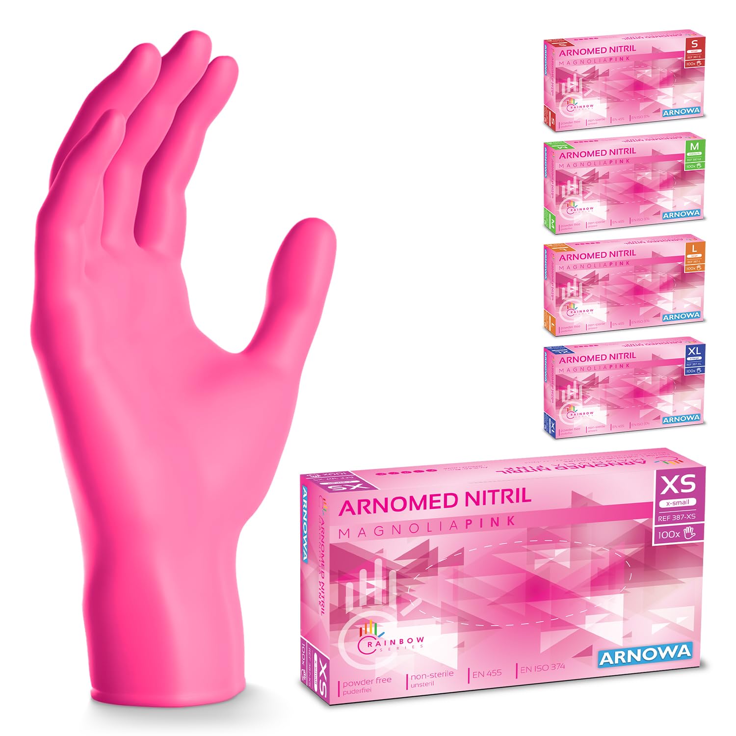 200x ARNOMED Einweghandschuhe Pink (2x100 Stück), Einmalhandschuhe XS, Nitril Handschuhe Einweg, Nitrilhandschuhe puderfrei, Gummihandschuhe Einweg Schutzhandschuhe Handschuhe Nitril in XS, S, M, L