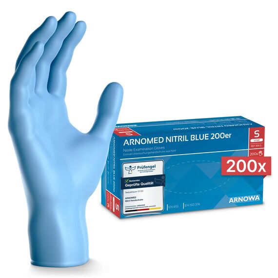 200x ARNOMED Einweghandschuhe Blau, Einmalhandschuhe S, Nitrilhandschuhe puderfrei, Handschuhe Einweg latexfrei, Gummihandschuhe Einweg, Handschuhe Nitril, Einmalhandschuhe in S, M, L & XL