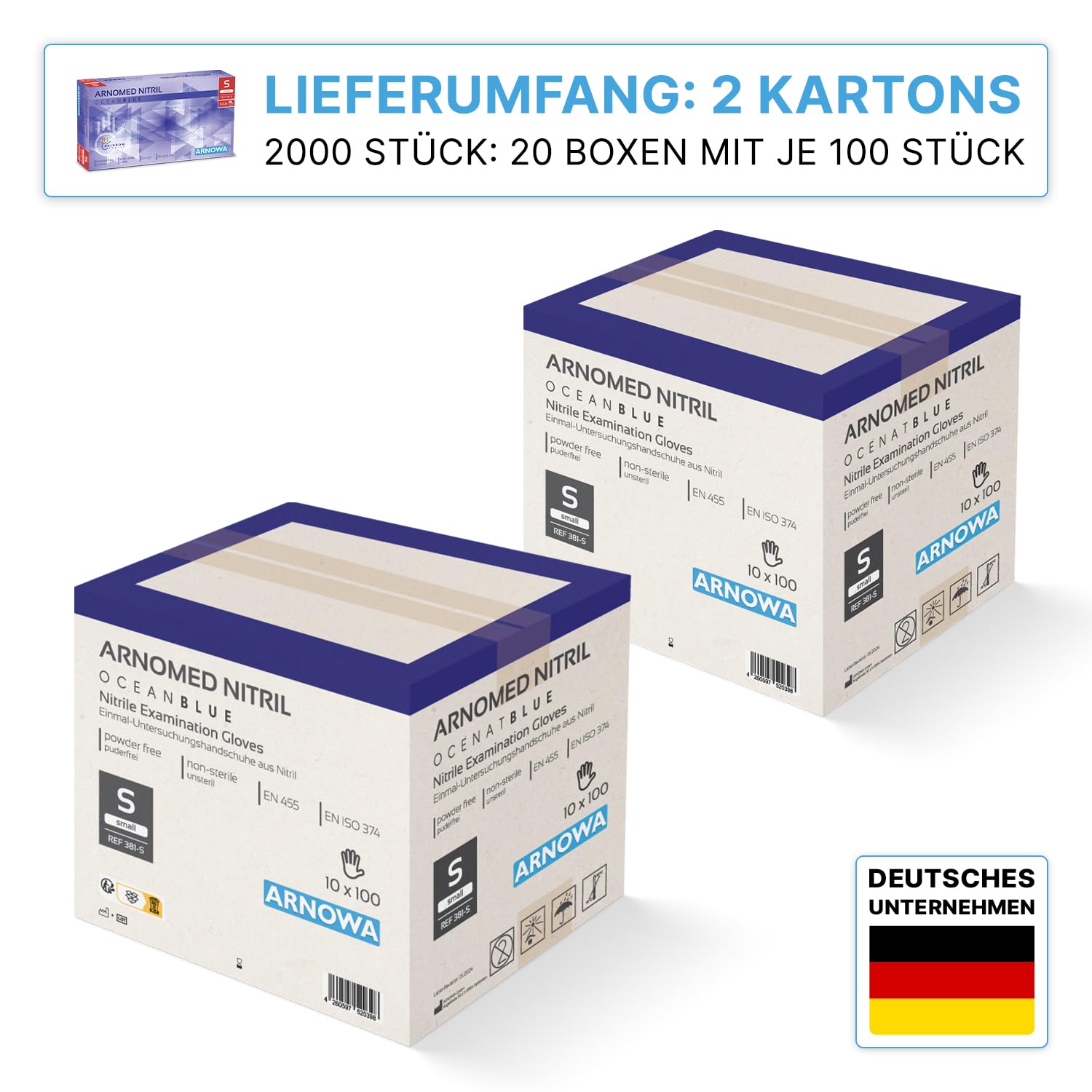 2000 Stück ARNOMED Einweghandschuhe Dunkelblau, Einmalhandschuhe S, Nitril Handschuhe Einweg, Nitrilhandschuhe puderfrei, Gummihandschuhe Einweg, Schutzhandschuhe, Handschuhe Nitril in S, M, L, XL