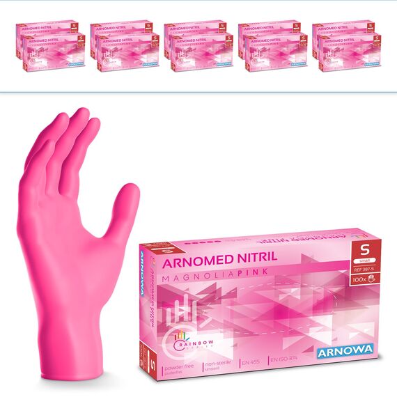 2000 Stück ARNOMED Einweghandschuhe Pink, Einmalhandschuhe S, Nitril Handschuhe, Nitrilhandschuhe puderfrei, Gummi-Handschuhe Einweg, Schutzhandschuhe, Handschuhe Nitril in XS, S, M, L, XL