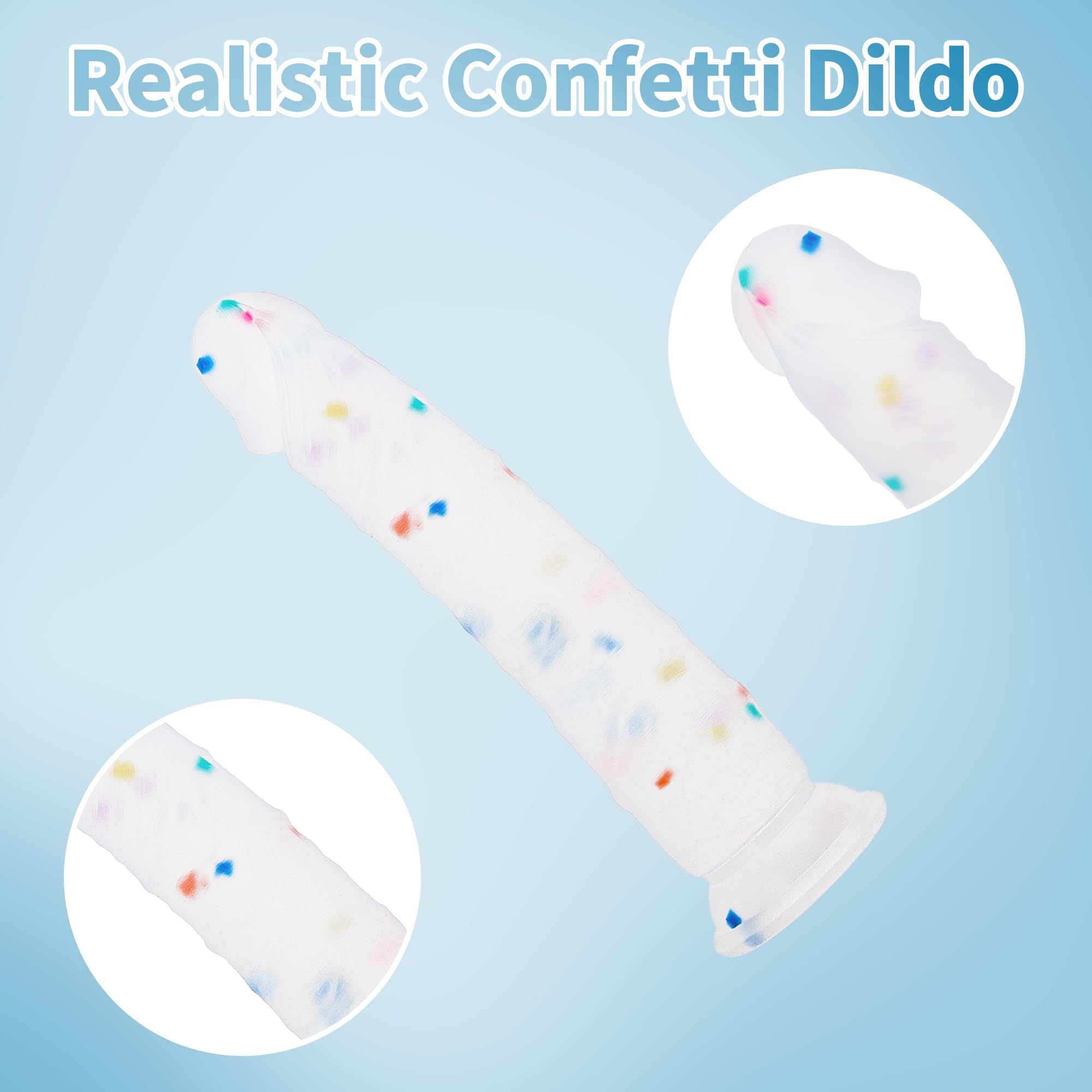 20cm Confetti Silikon Dildo mit Realistische Design, Flacher Saugfuss für Bequemes Spielen ohne Hände, Anal-Dildo für Vagina, G-Spot und Prostata
