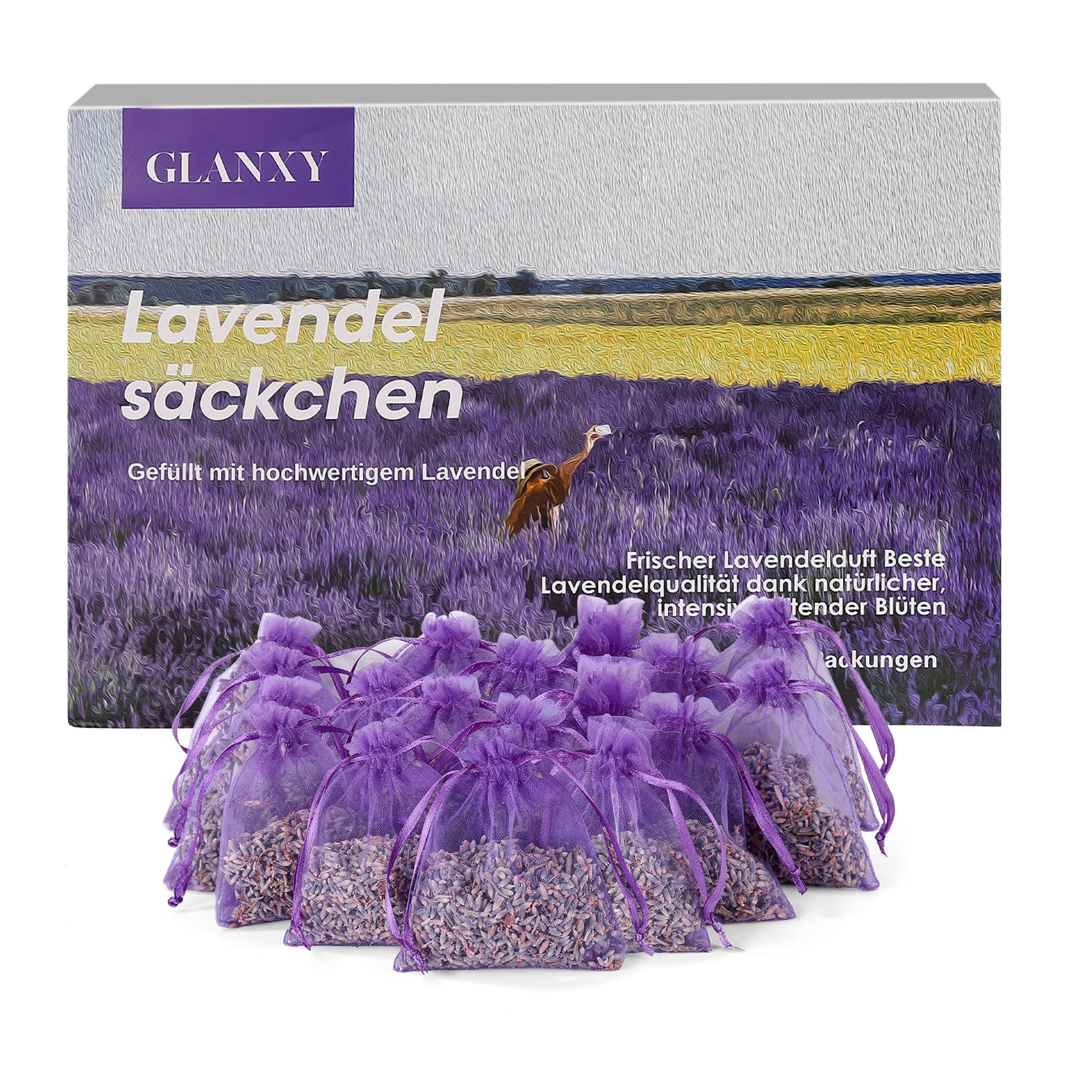 20x Lavendelsäckchen zum Schlafen und Entspannen,Glanxy duftendem Getrockneter Lavendel Lavendelblüten getrocknet Duft Beutel als Duftsackchen, Schrankduft, Mottenschutz gegen Motten im Kleiderschrank