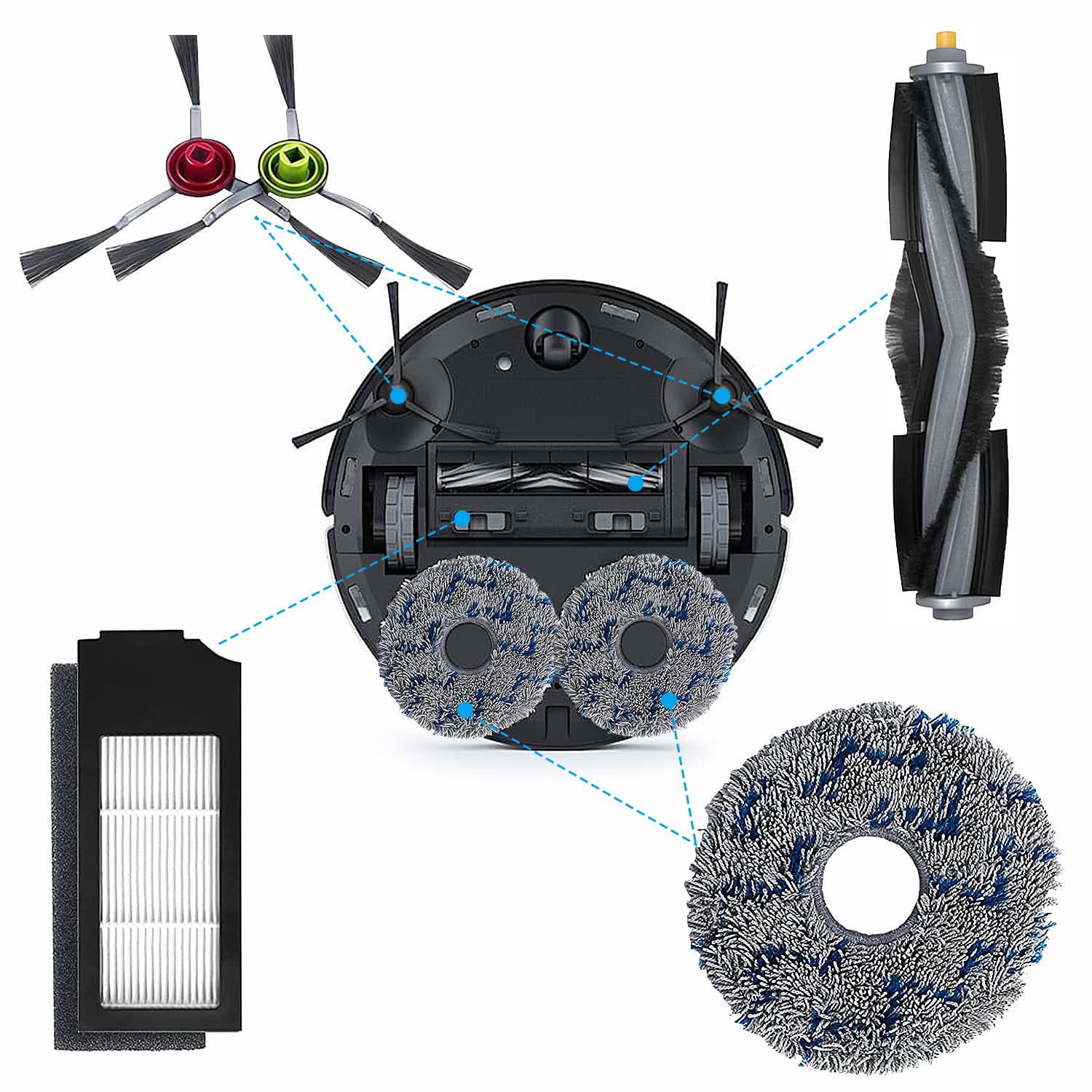 23 Stück Ersatz-Zubehör-Set für Ecovacs DEEBOT X1 Turbo/Omni, 1 Hauptbürste, 2 Reinigungsbürsten, 4 HEPA-Staubsauger Filter, 4 Wischtücher, 4 Staubsaugerbeutel, 8 Seitenbürsten (23)