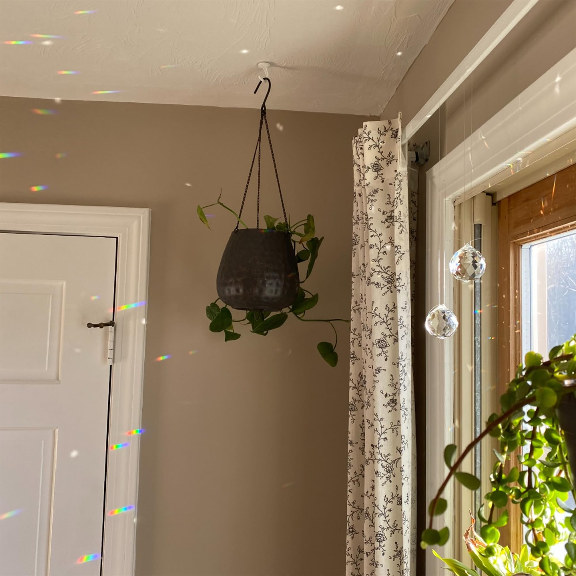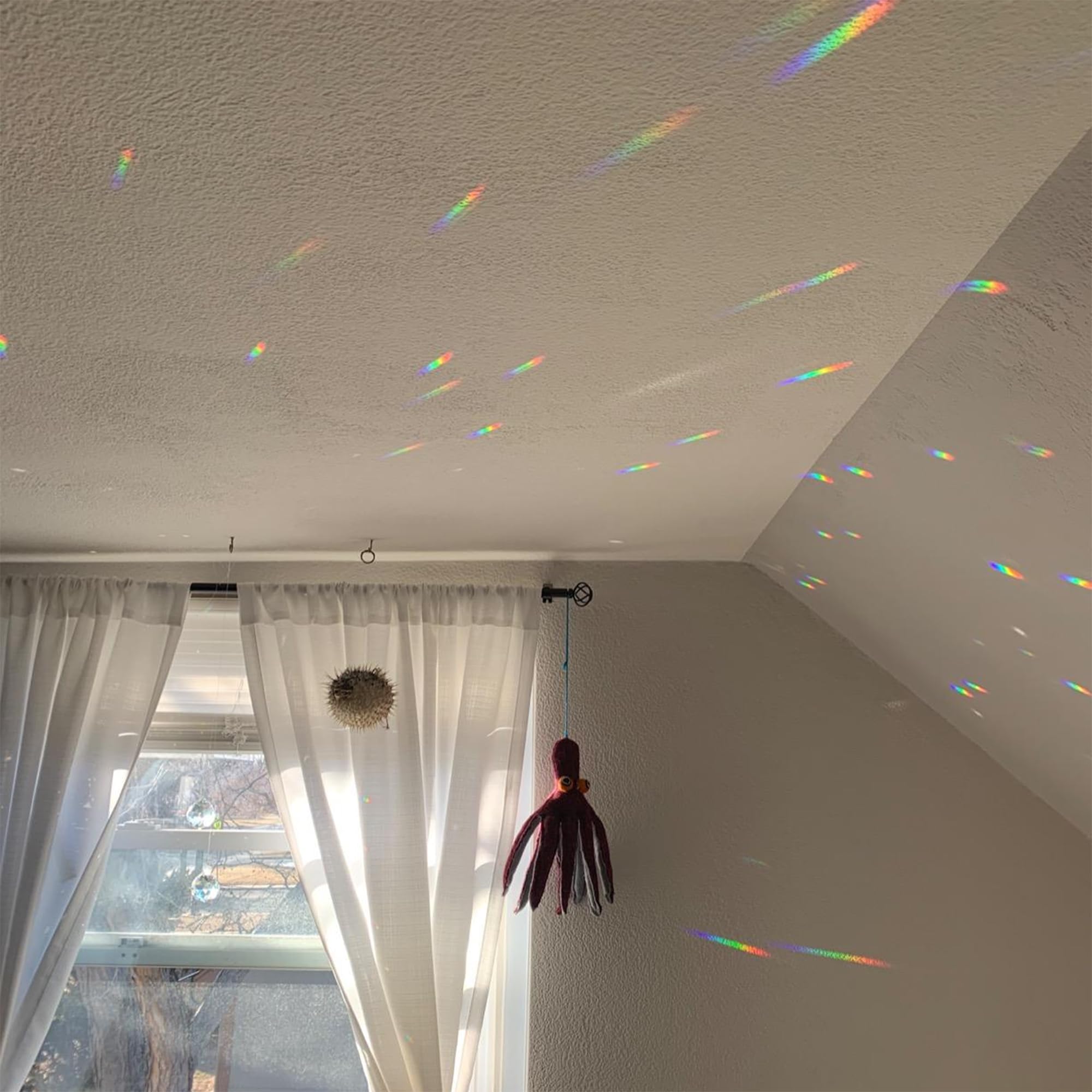 - Regenbogen-Kristallprismen: Hängen Sie diese Kristallprismen in Ihrem Garten oder in der Nähe eines Fensters auf, um das Sonnenlicht einzufangen und faszinierende Regenbögen rund um Ihren Raum zu zerstreuen