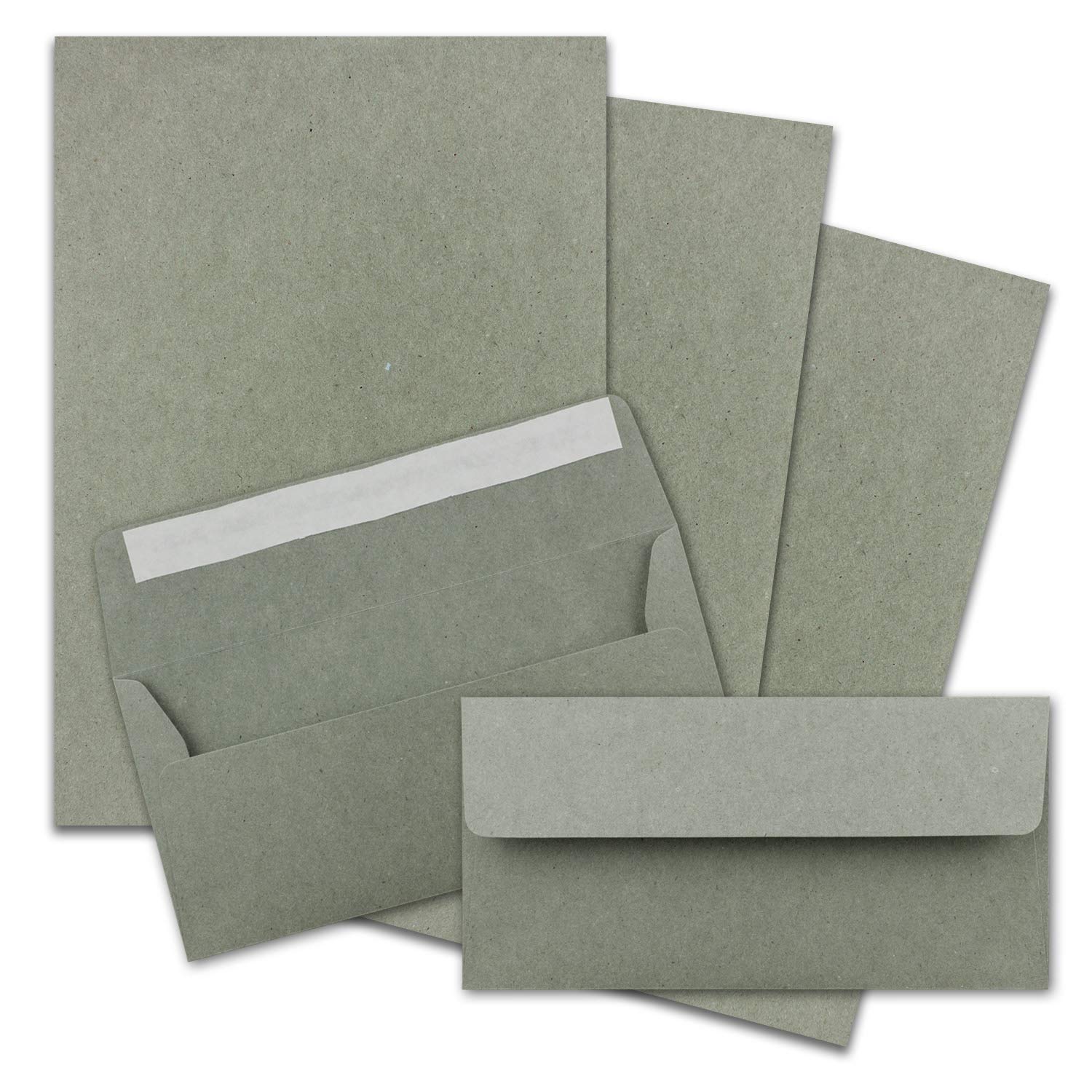 100x Briefpapier Set DIN A4 mit DIN Lang Briefumschlägen, Haftklebung - Kraftpapier-Grau - Recycling-Schreibpapier mit Kuverts - FarbenFroh by GUSTAV NEUSER