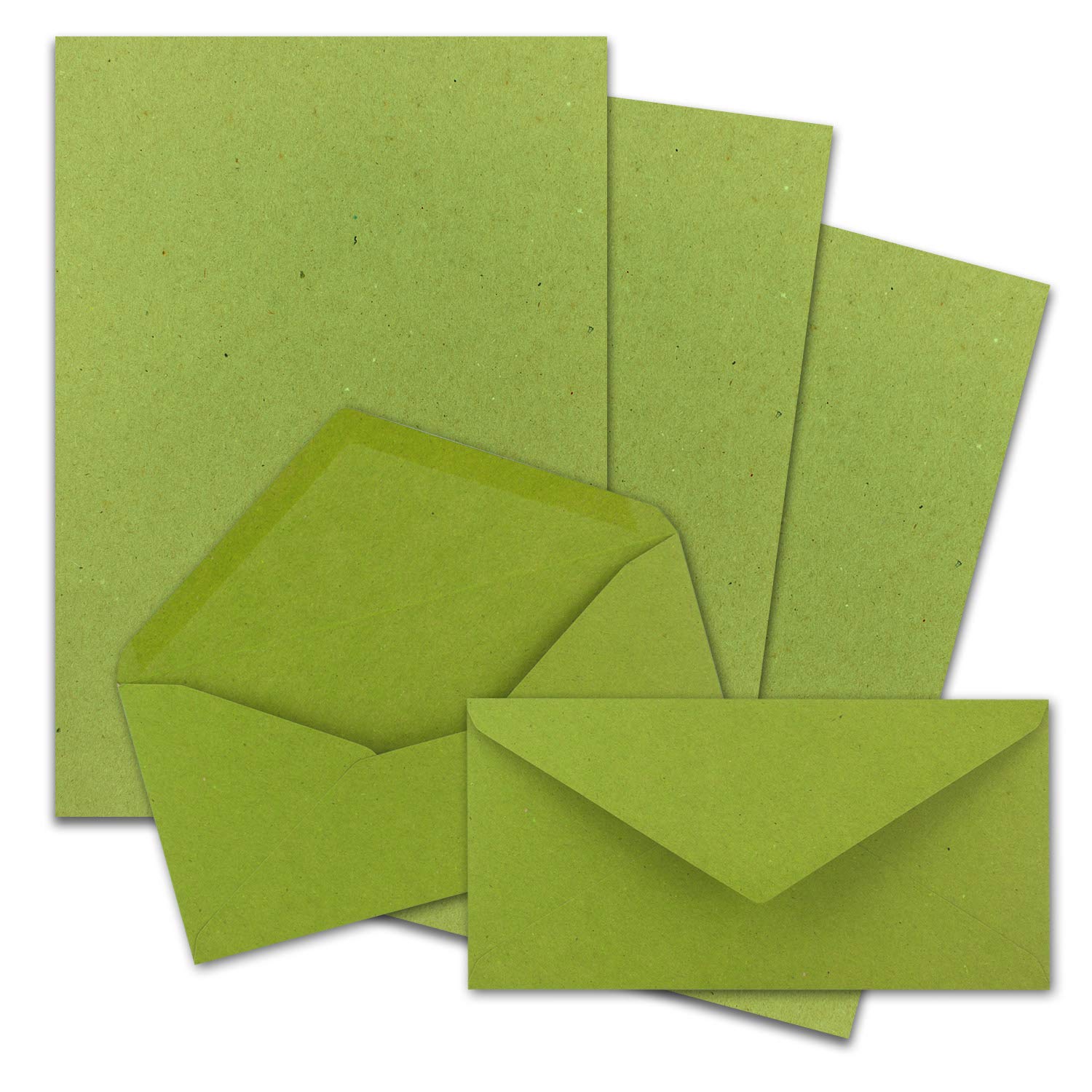 100x Briefpapier Set DIN A4 mit DIN Lang Briefumschlägen, Nassklebung - Kraftpapier-Hellgrün - Recycling-Schreibpapier mit Kuverts - FarbenFroh by GUSTAV NEUSER