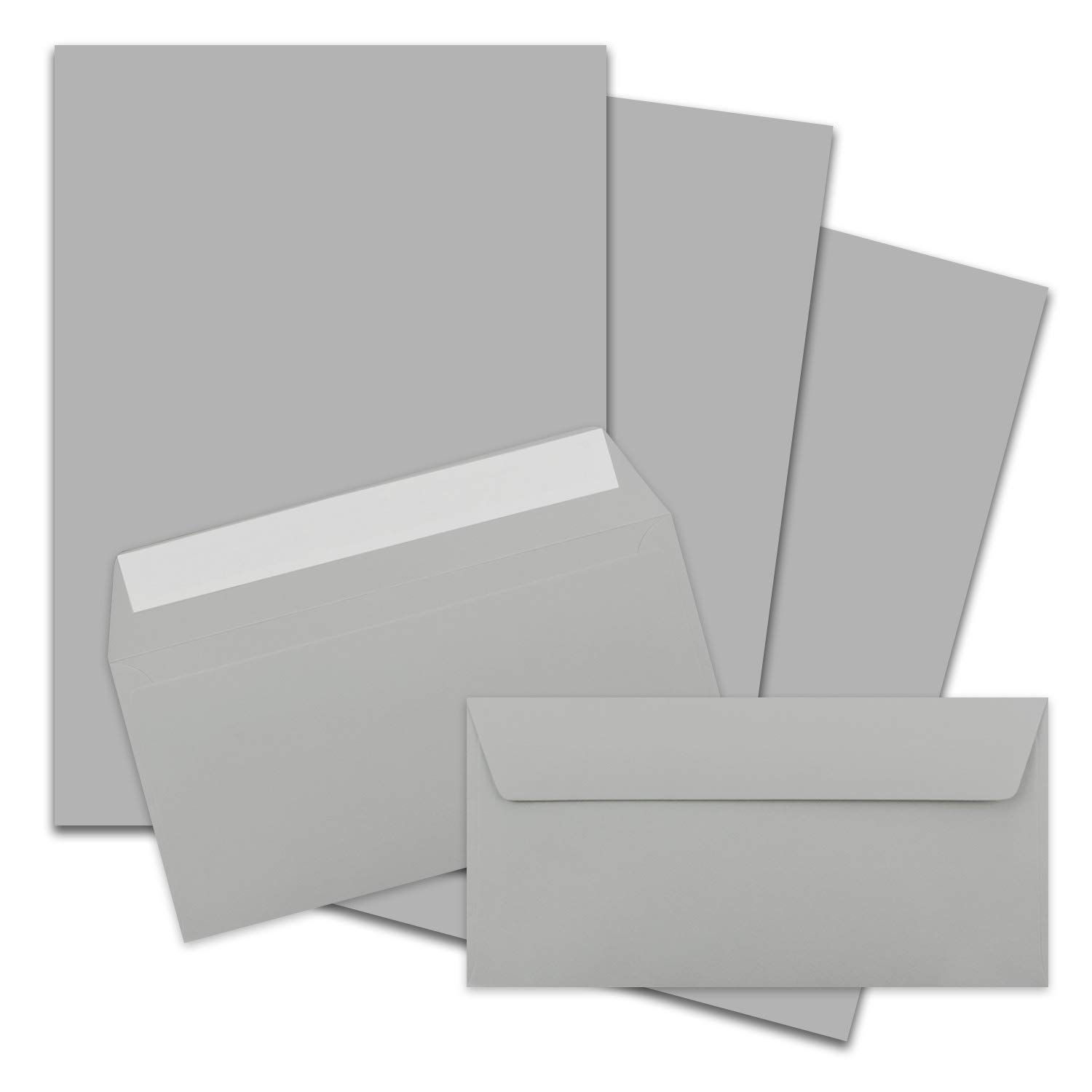 200x Briefpapier Set DIN A4 mit DIN Lang Briefumschlägen, Haftklebung - Hellgrau - mattes Schreibpapier mit Kuverts - FarbenFroh by GUSTAV NEUSER