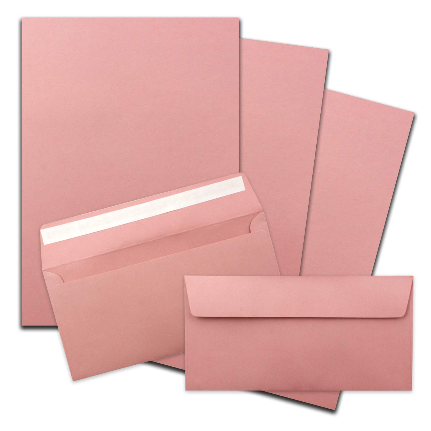 200x Briefpapier Set DIN A4 mit DIN Lang Briefumschlägen, Haftklebung - Alt-Rosa - mattes Schreibpapier mit Kuverts - FarbenFroh by GUSTAV NEUSER