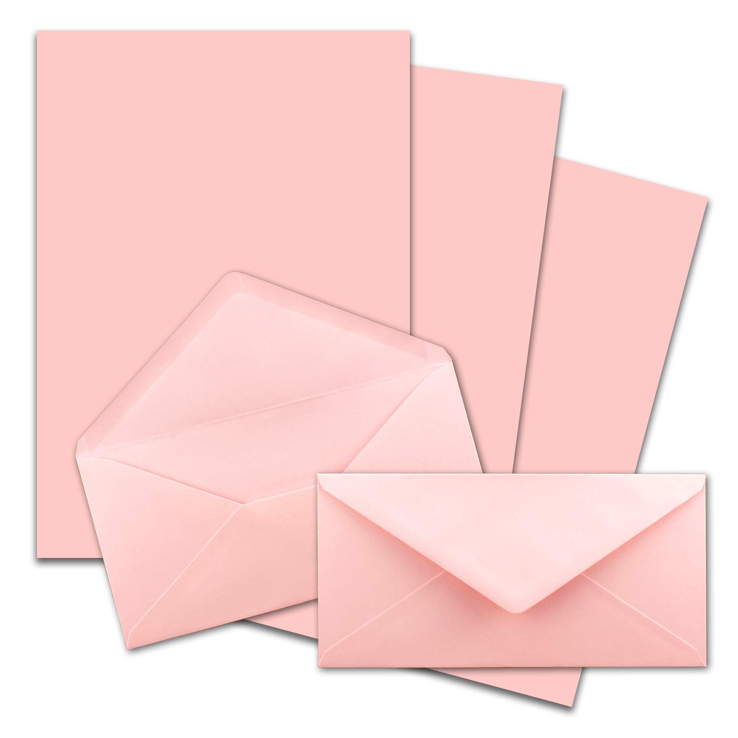 1000x Briefpapier Set DIN A4 mit DIN Lang Briefumschlägen, Nassklebung - Rosa - mattes Schreibpapier mit Kuverts - FarbenFroh by GUSTAV NEUSER