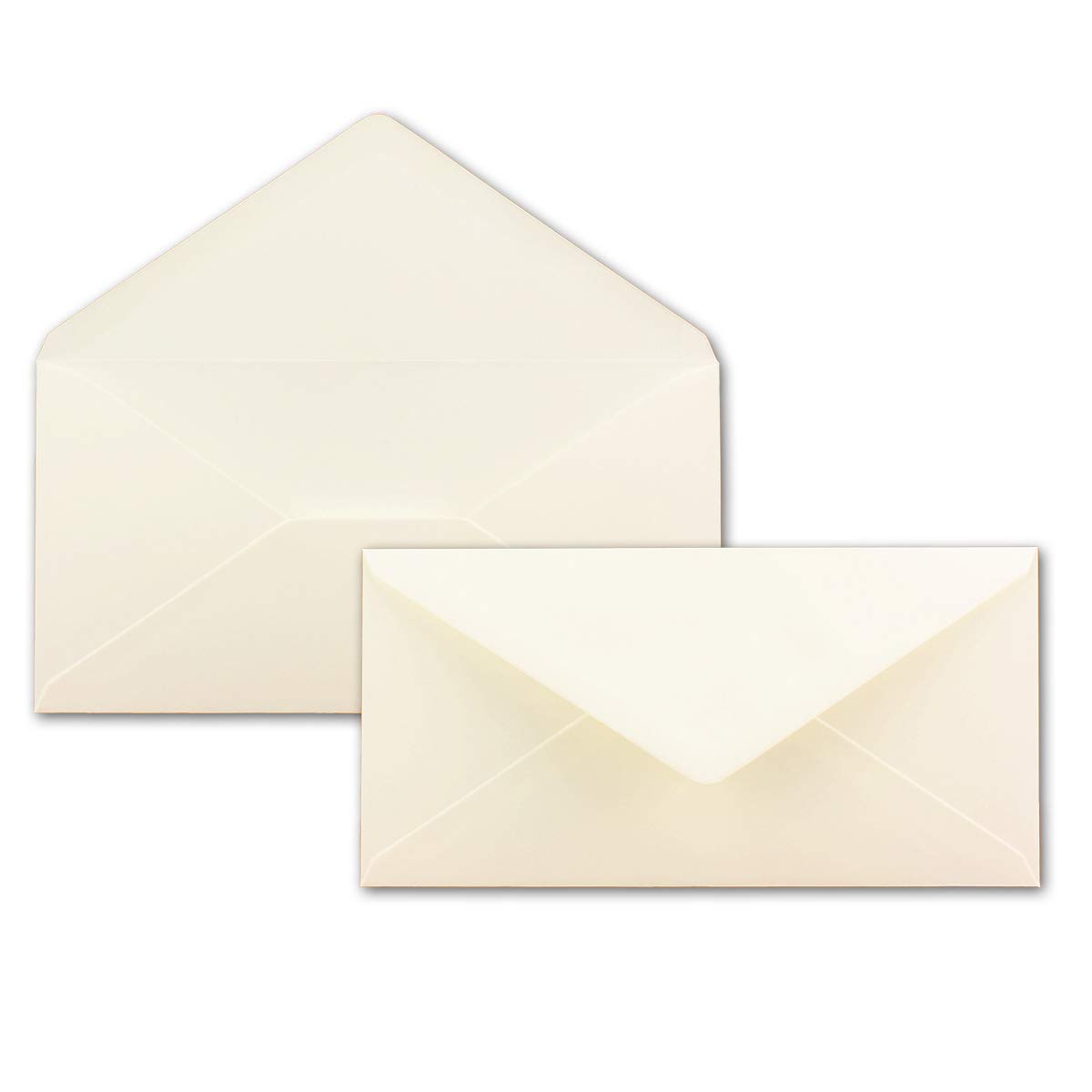 Grammatur:: 120 g/m² (Gramm pro Quadratmeter)Klebung: Nassklebung mit Gummierung zum Anfeuchten, klassische dreieckiger Briefverschluss