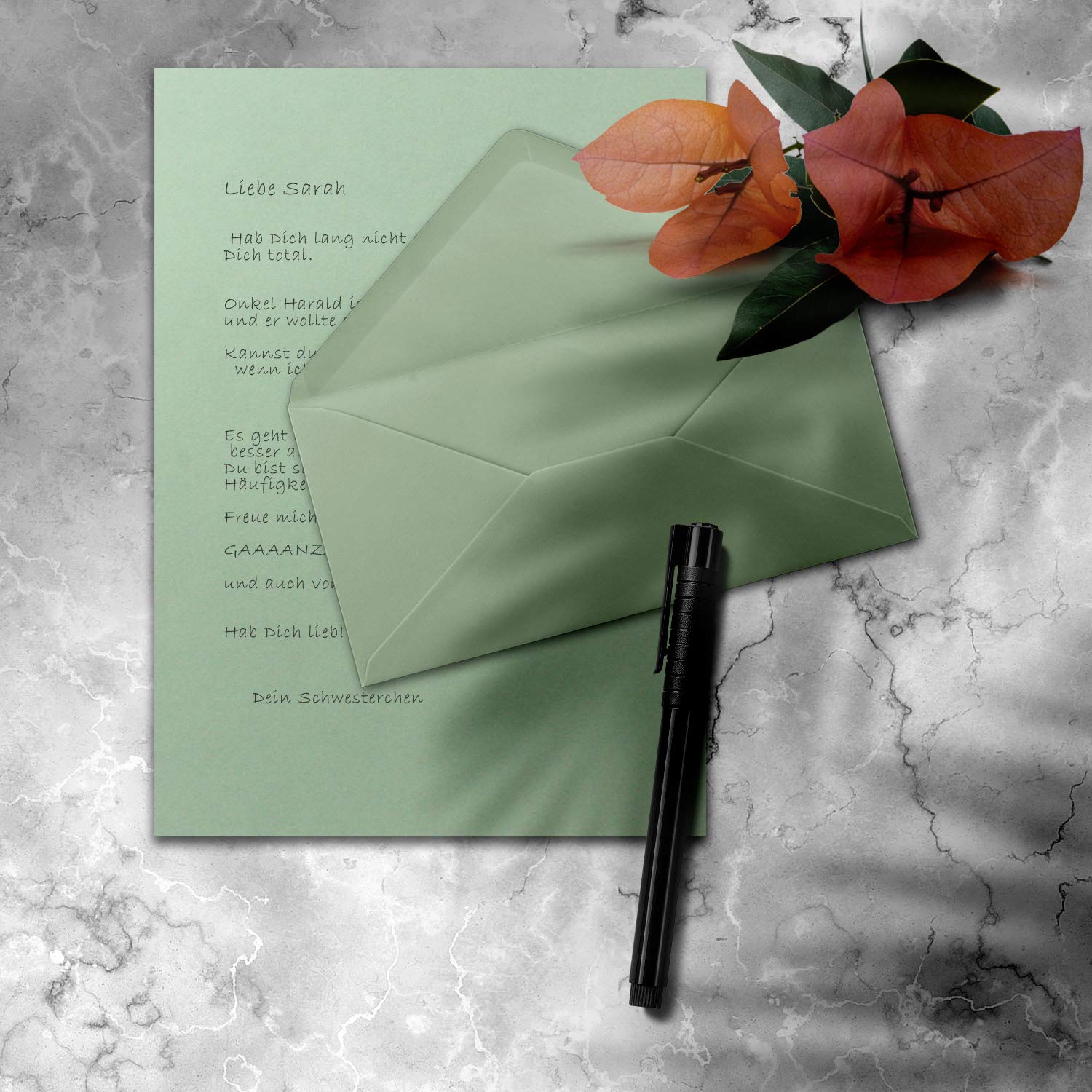 Mit diesem Brief-Set erhalten Sie das DIN A4 Briefpapier zusammen mit den farblich abgestimmten Umschlägen aus dem selben Material.