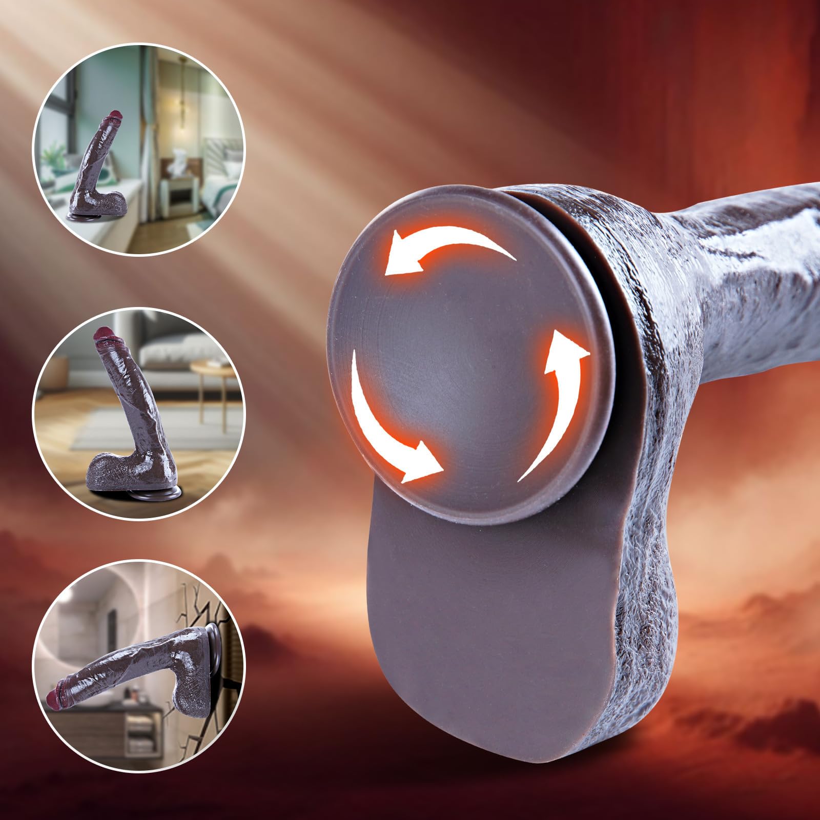 26 cm schwarzer Riesendildo, dicker realistischer Silikondildo, extra grosser Riesenpenis mit riesigem, kräftigem Saugnapf, freihändiges, realistisches Kurbel-XXL-Analspielzeug für Frauen und Paare