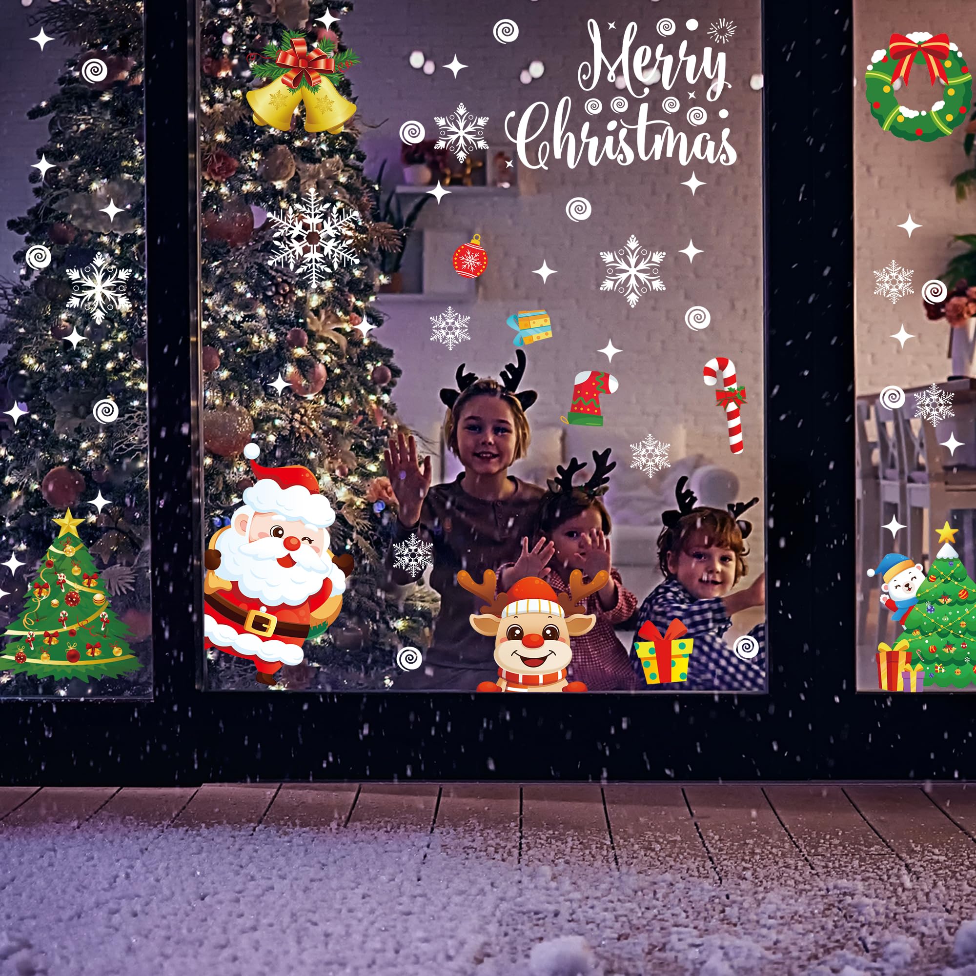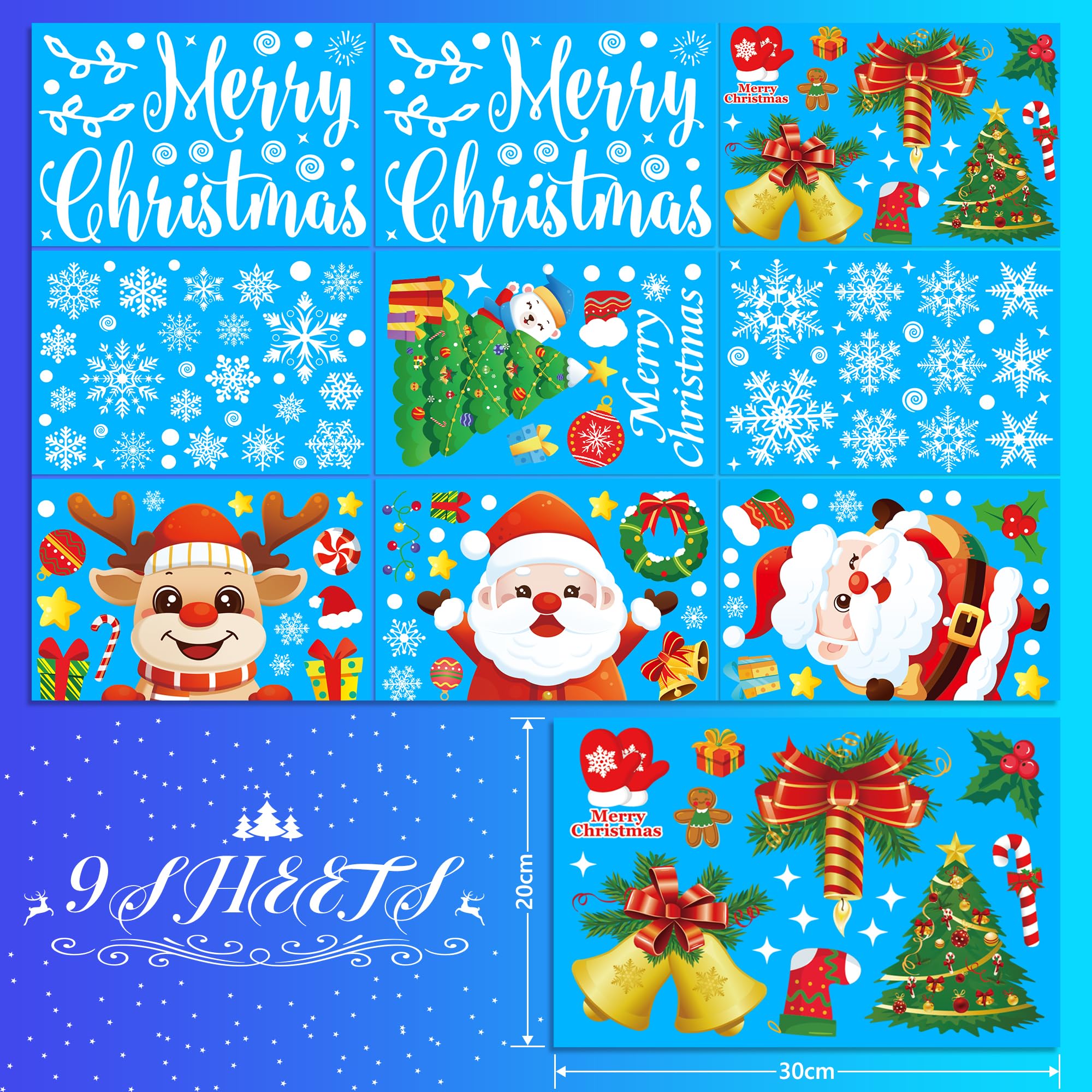 Moxled Fensterbilder Weihnachten Selbstklebend, 162 Fensterdeko Weihnachten mit Schneeflocken Weihnachtsmann Elch, Wiederverwendbar Statisch Haftende PVC Aufkleber für Fenster Tür Weihnachtsdeko