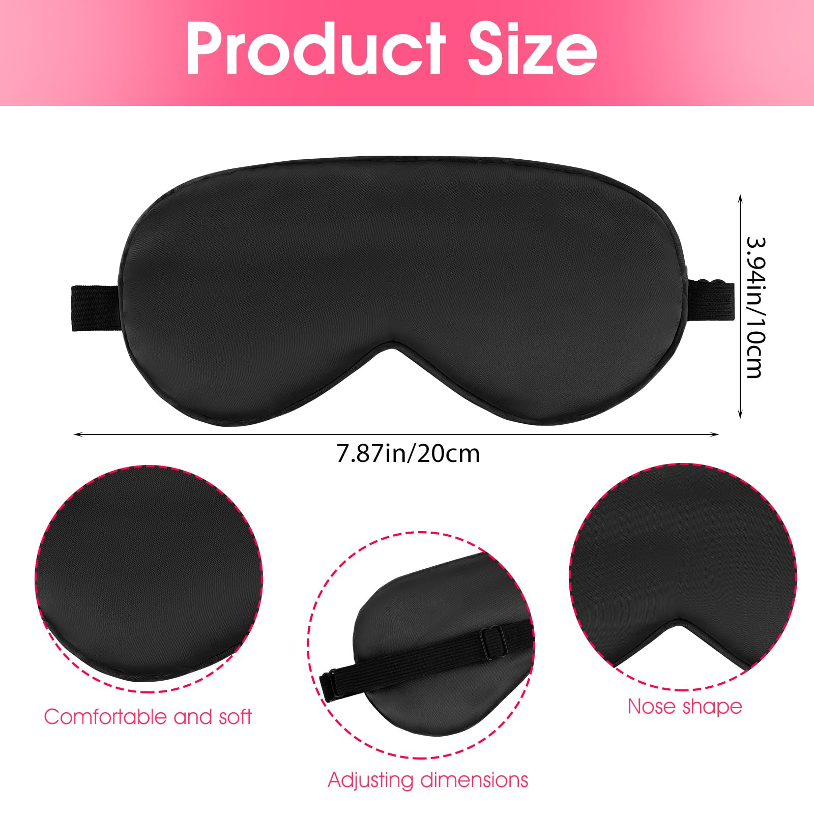 2er Pack Schlafmaske Aus Seide Augenmaske Zum Schlafen Weiche Satin Augenbinde Mit Gummiband Bequeme Nachtschlafmaske für Damen Und Herren (Schwarz) Spezifikation:Kategorie: AugenmaskeFarbe: Schwarz, RosaMaterial: Polyester, BaumwolleProduktgrösse: 7,87 × 3,74 × 0,39 Zoll/20 × 9,5 × 1 cmFunktion: Es kann Licht effektiv blockieren, ist bequem, weich und langlebig, sodass Sie Ihren Schlaf jederzeit wieder auffüllen und die Schlafqualität verbessern können.
