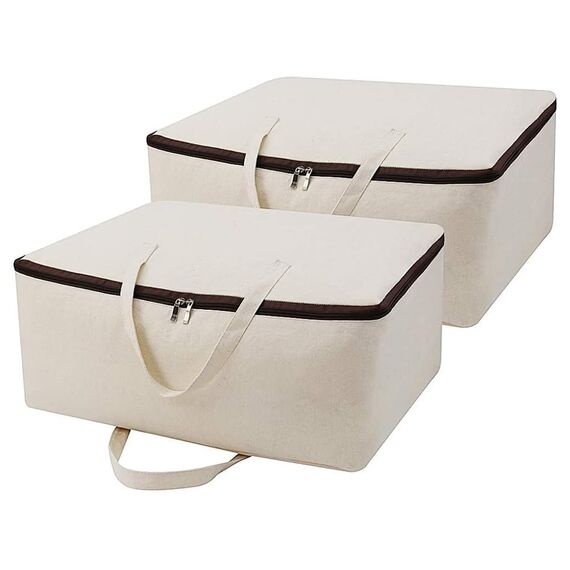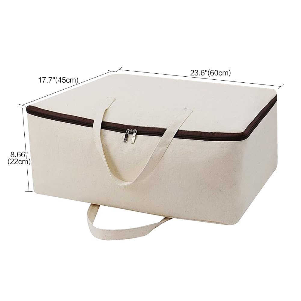 2er-Pack, weiche Aufbewahrungsbeutel aus natürlichem Baumwollsegeltuch mit Griffen und 3-seitigem Reissverschluss, gut für Kleidung Decken Bettdecken Kissen Organizer im Kleiderschrank, Kleiderschrank