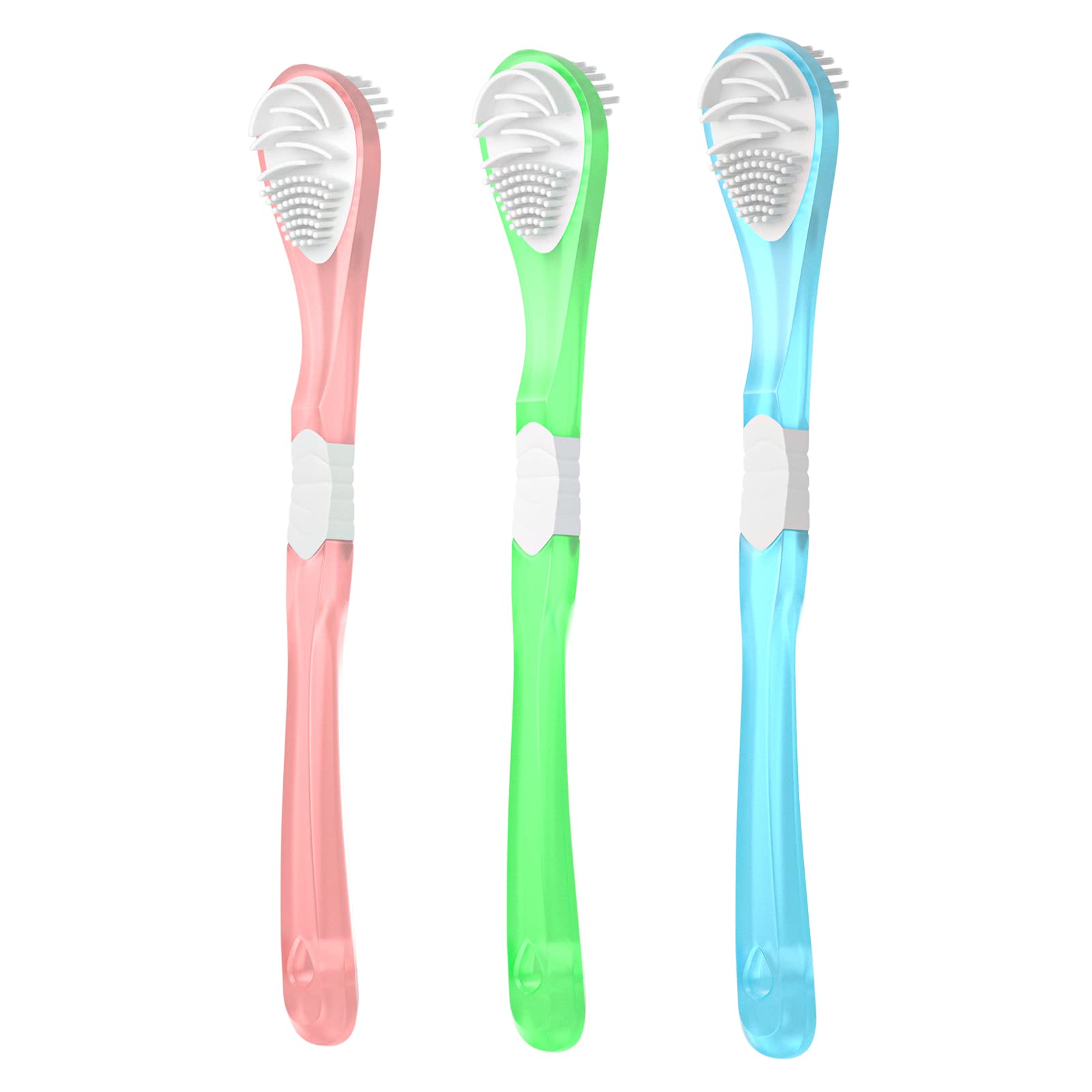3-Farben 3er-Pack Erwachsenen-Zungenschaber und Zungenreinigungsbürste, doppelseitige weiche Zungenbelagbürste, tragbare orale Massagebürste aus Lebensmittelqualität