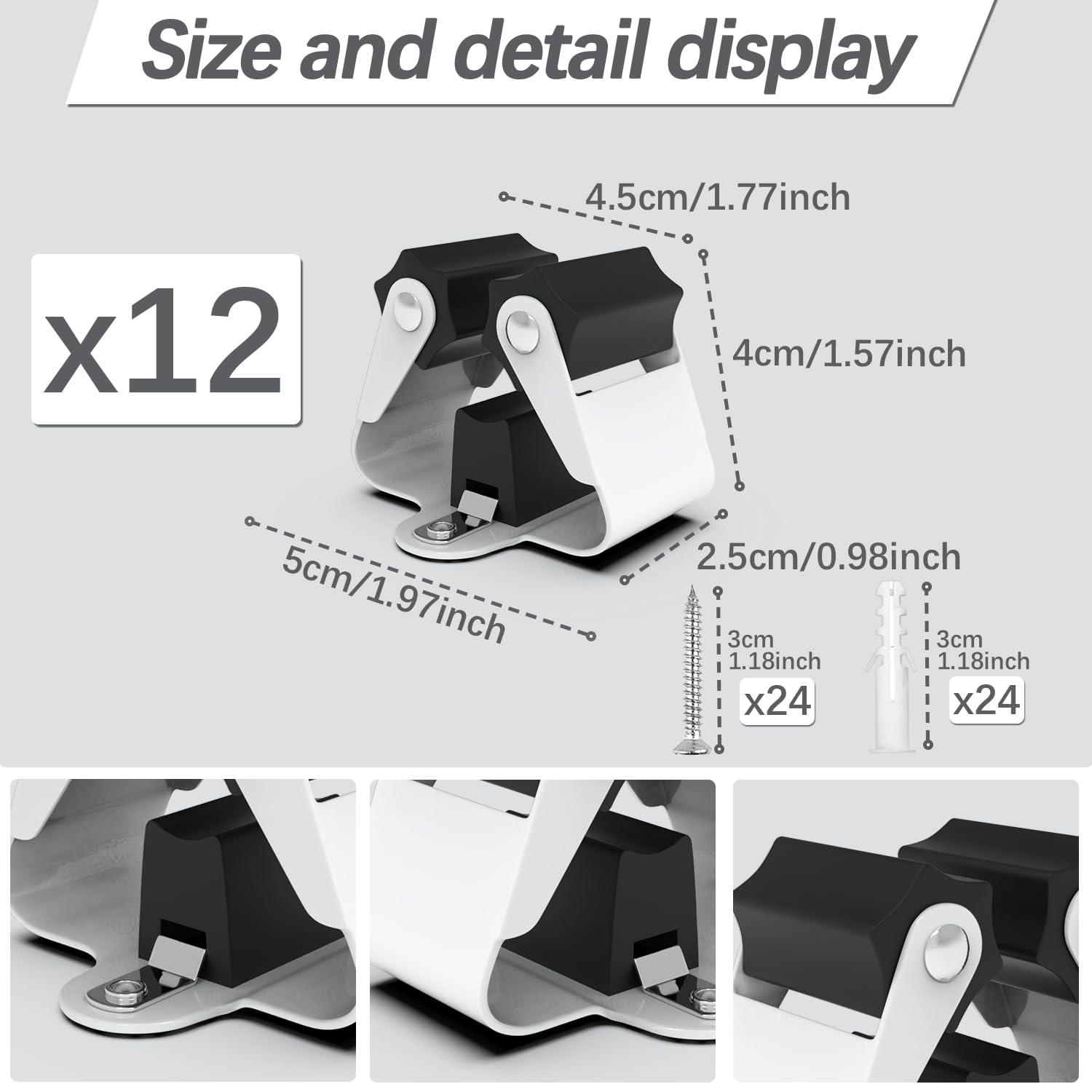 3-H 12 Stück Gerätehalter, 0,7mm Besenhalter Wandhalterung Besen, Halterung Gartengeräte, Besenhalterung Wand Gartengerätehalter Werkzeughalter für Besen, Mop, Haus, Garten, Stahl, Schwarz