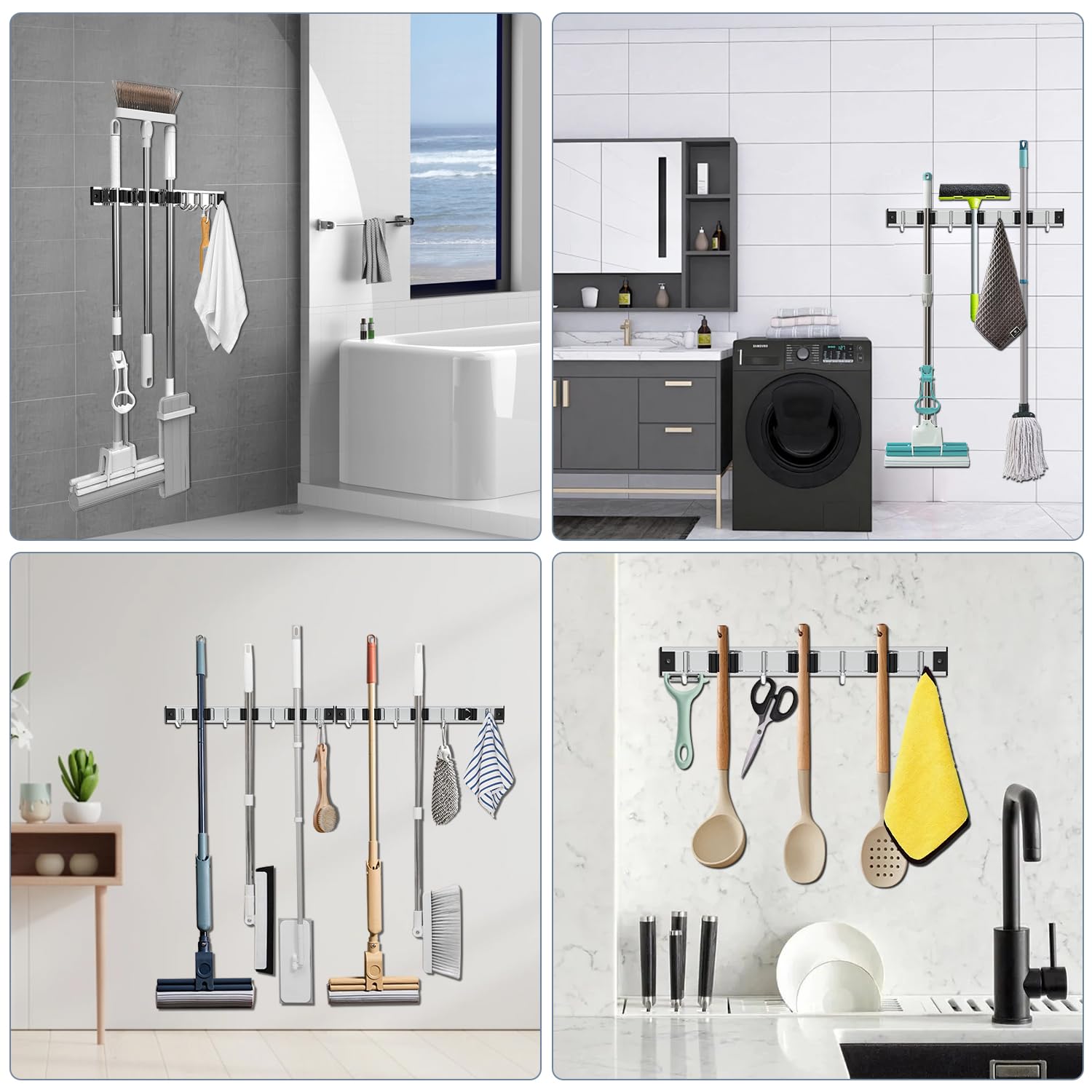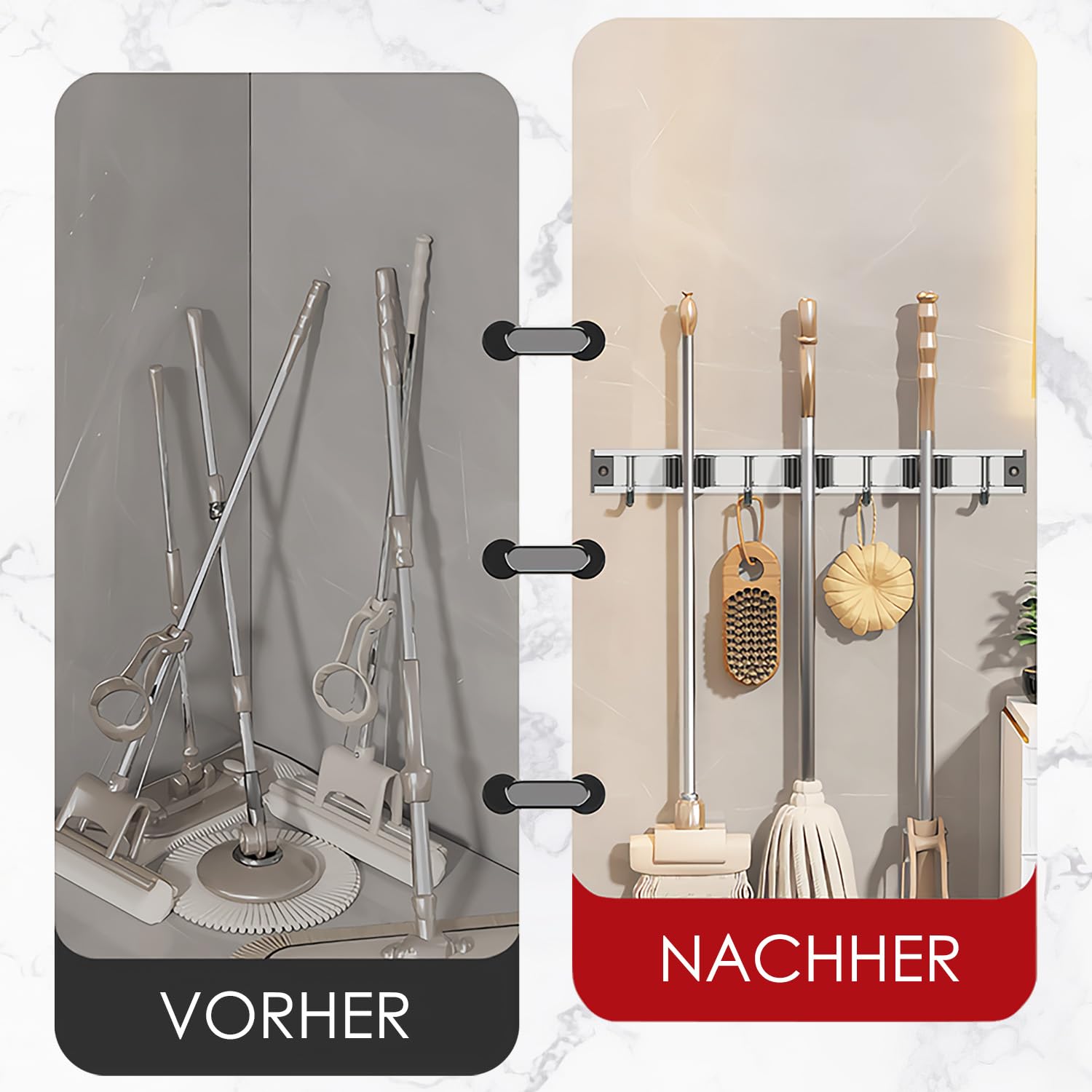 Gerätehalterleiste ist geeignet für platzsparende Aufbewahrung und bringt Ordnung in Ihre Werkstatt und Garage. Besen, Werkzeuge, Gartengeräte sind immer schnell griffbereit und einfach nutzen. Geräteleiste ist stabil, 3-H Hakenleiste ist praktisch Design, machen Sie die Gartengeräte Aufbewahrung und die Organisation von Werkzeugen sehr einfach. Hochwertige Edelstahl SUS304 sorgt für hohe Stabilität, passt sich automatisch der Stiele Ihrer Werkzeuge an. Einfach Montage mit zwei Arte: Gerätehalter Wandhalterung durch einfach selbstaufkleben. Klemme und Haken lassen sich schnell und einfach am Gerätehalter einzuschieben. Wandbefestigungsmaterial im Lieferumfang enthalten, jeder kann einfach und slebst montage. 3-H Besenhalterung Wand 2PC Set ist eine gute Halterung für gartengeräte, Besen Wandhalterung hält und organisiert Besen und Gartengeräte. Gerätehalter kann Ihren Besen, Mopp, Rakel, Kehrschaufel, kleinen Staubsauger, Rechen, Schaufel und mehr einfach organisieren. Praktische Aufbewahrung Besenhalterung für Ihr Zimmer. Und mehr Möglichkeiten werden von Ihnen entdeckt. Gerätehalter Gartengeräte bieten zusätzlichen Platz zum Aufhängen für verschiedene Gegenstände und erweitern den Lebensraum unsichtbar. Werkzeug Wandhalterung ist perfekt für die Aufbewahrung einer Vielzahl von Werkzeugen im Innen- und Aussenbereich. Die Geräte mit Stiel sind schön an der Wand Besenhalterung sortiert. Gartengeräte Halterung können an Wänden, hinter Türen oder an den Seiten von Schränken verwendet werden. Besenhalter Wandhalterung Besen ist praktische für Ihr Zimmer und Zuhause, geeignet für Waschküche, Küche, Garten, Garage, Speisekammer und Keller. Besenhalter wandhaken für gartengeräte sind aus hochwertige Edlstahl und eignen sich Ideal um Gegenstände in Küche, Badezimmer oder anderen Räumen in Ihrem Zuhause zu befestigen. Wandhalterung Besen Halter ist aus strapazierfähigem Edelstahl 304, ist wasserdicht, rostfrei und ohne zu rosten. Praktische Wandhalterung perfekt als Besenhalter, Gerätehalter, Gartengerätehalter, Schaufelhalter, Mopphalter, Besenstielhalter, Werkzeughalter Wand.