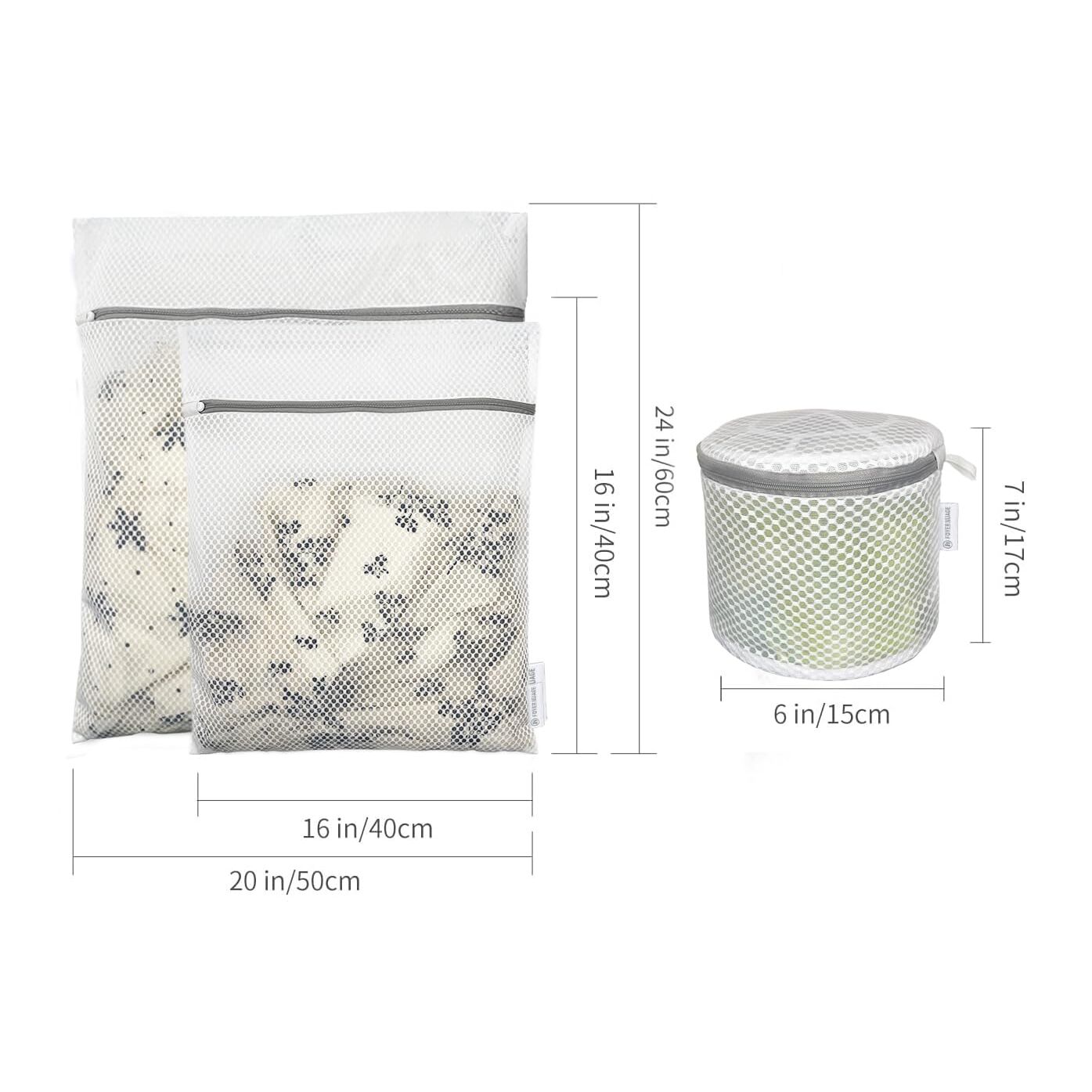 3 Stück Premium Honeycomb Wäschesäcke Feinwäsche Reissverschluss Organisieren Taschen Kleidung Unterwäsche Bluse Socken Extra Stark Klein (Bra+M+L, Weiss)