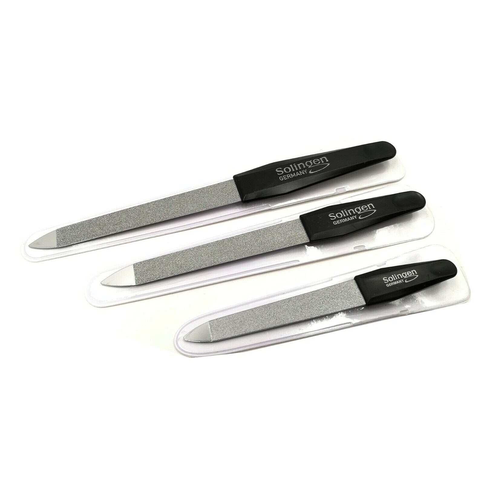 Solingen Saphir Nagelfeilen Set 3er, Profi Manikuere Feilen fein grob mit Kunststoffgriff schwarz
