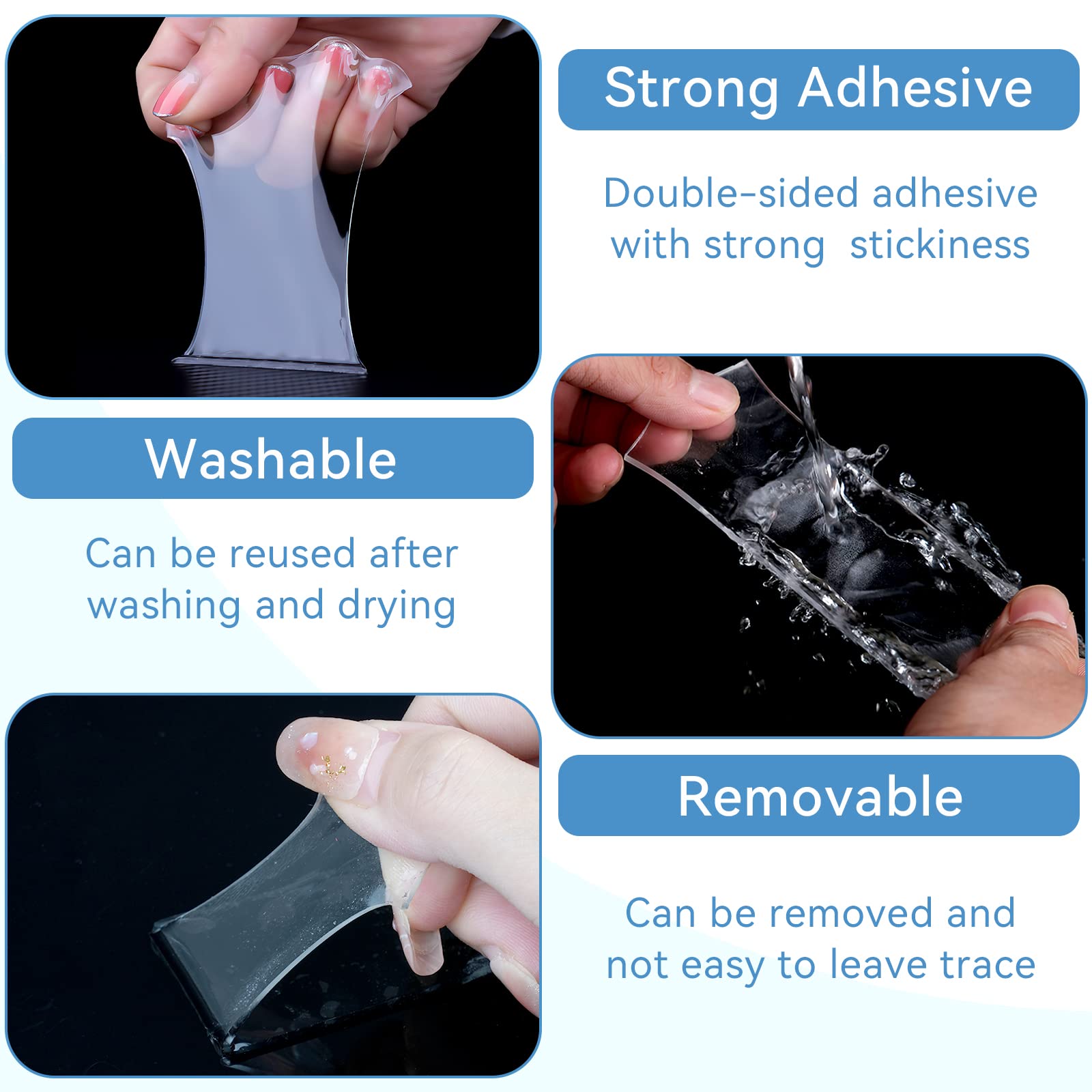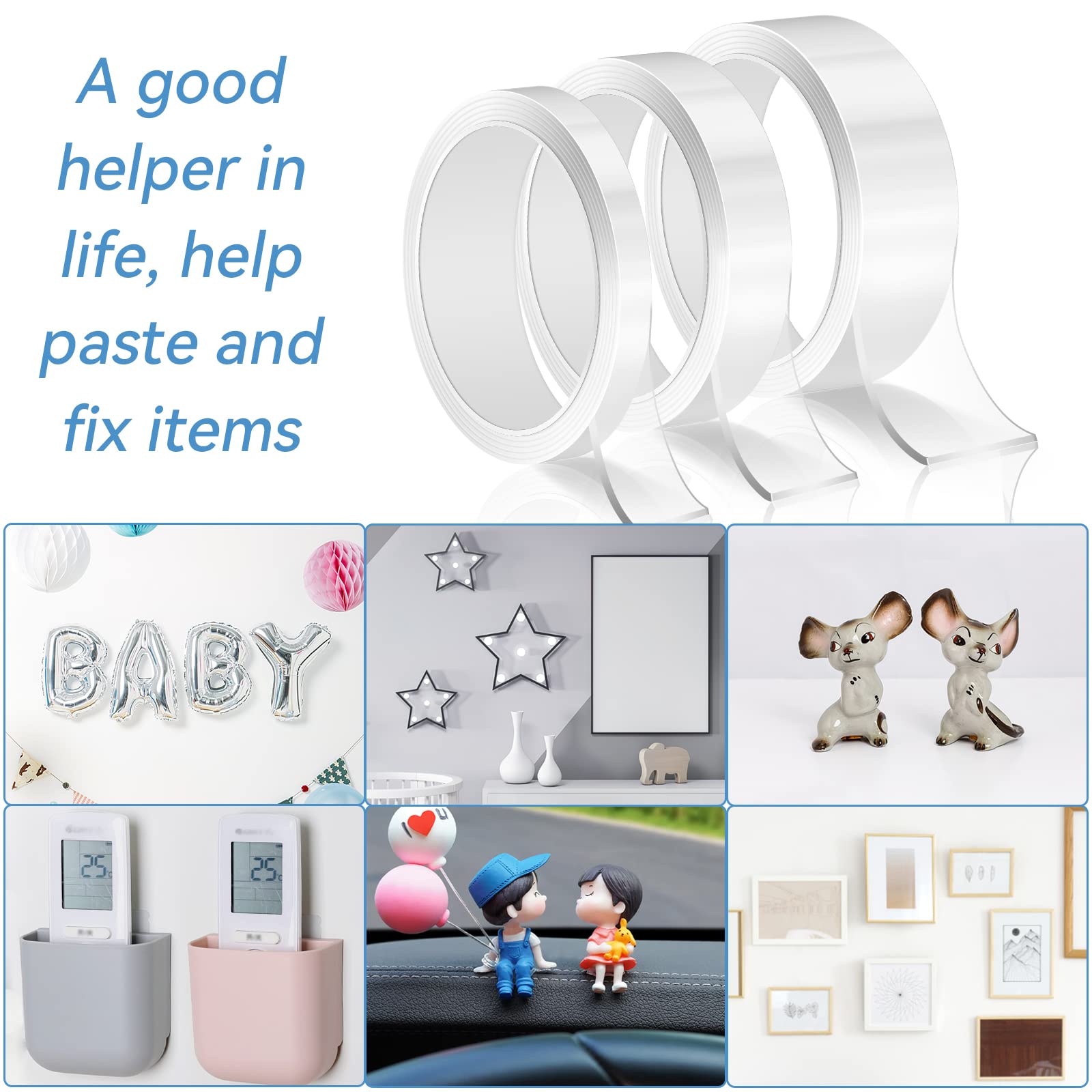 3 Rollen Extra Starkes Transparent Klebeband - Doppelseitig, Abwaschbar, Spurlos, Nano Beidseitiges Klebeband für Teppich, Foto, Auto, Küche, Büro