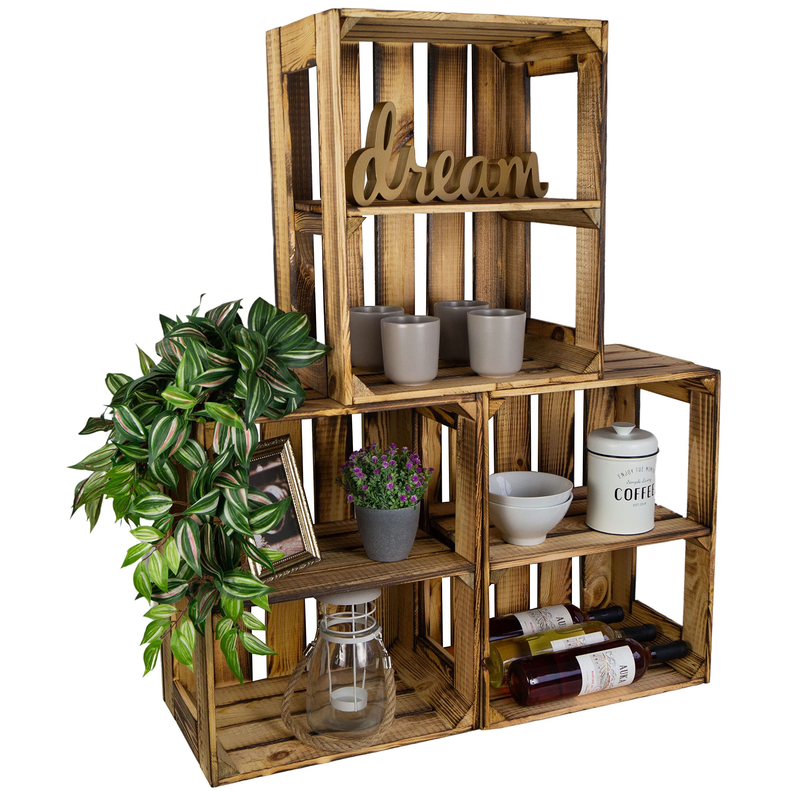 flambierte/geflammte Bücherregal - Schuhregalkiste mit Zwischenbrett/Mittelbrett Einlage ca 50x40x30cm / Apfelkisten Weinkisten Holzkisten aus dem Alten Land (GEFLAMMT OFFEN MIT Einlage QUER)