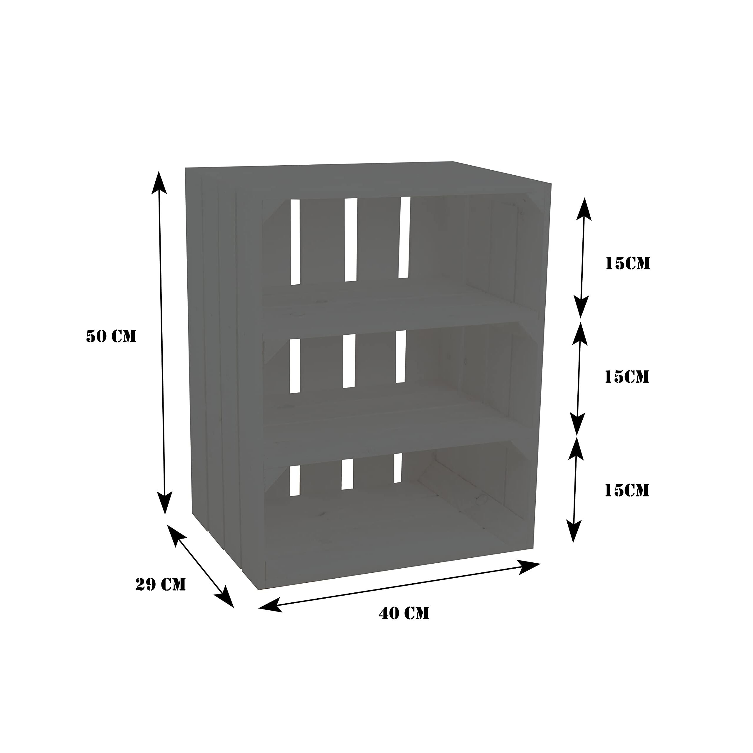 Weisse/geflammte Bücherregal - Schuhregalkiste mit Zwischenbrett/Mittelbrett Einlage ca 50x40x30cm / Apfelkisten Weinkisten Holzkisten aus dem Alten Land (Weiss doppelt geflammt Quer)