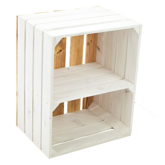 flambierte/geflammte Bücherregal - Schuhregalkiste mit Zwischenbrett/Mittelbrett Einlage ca 50x40x30cm / Apfelkisten Weinkisten Holzkisten aus dem Alten Land (Weiss FLAM Boden Weiss QUER)