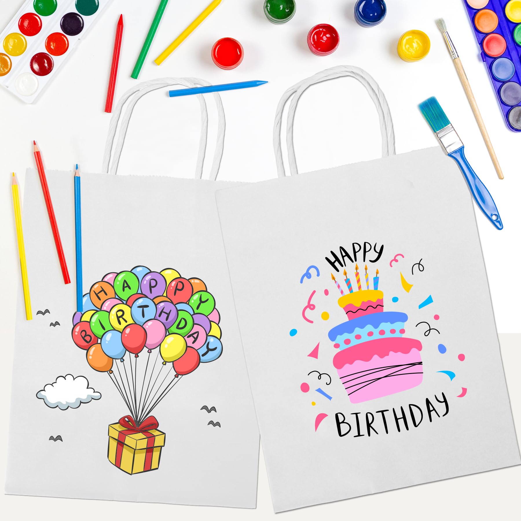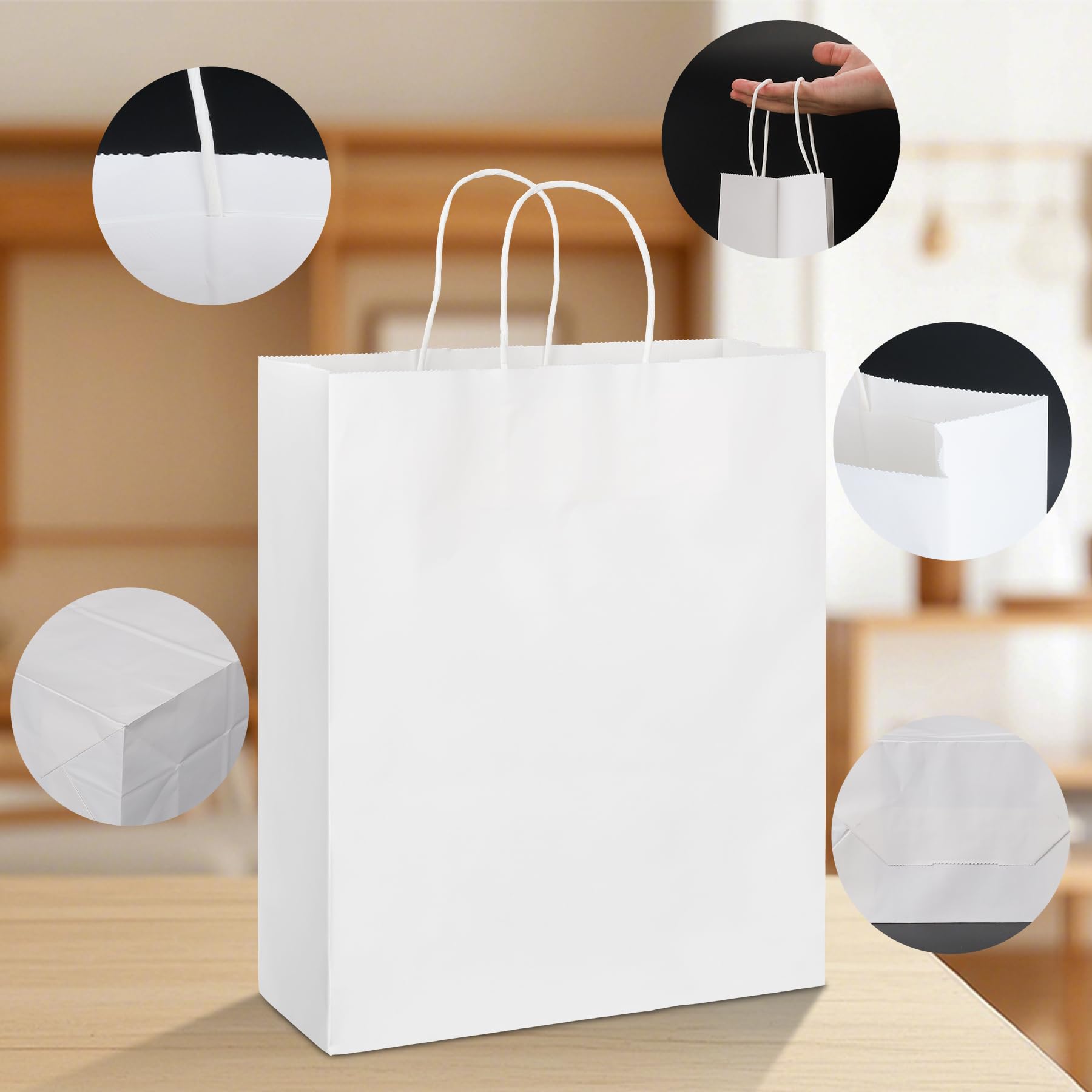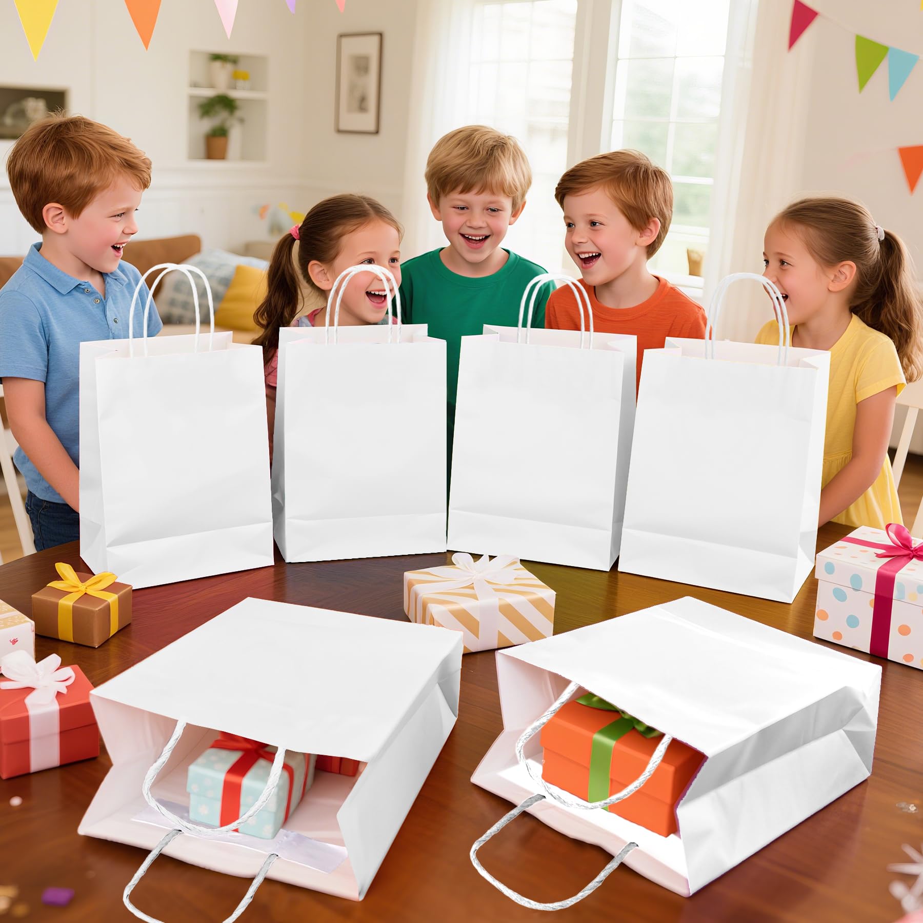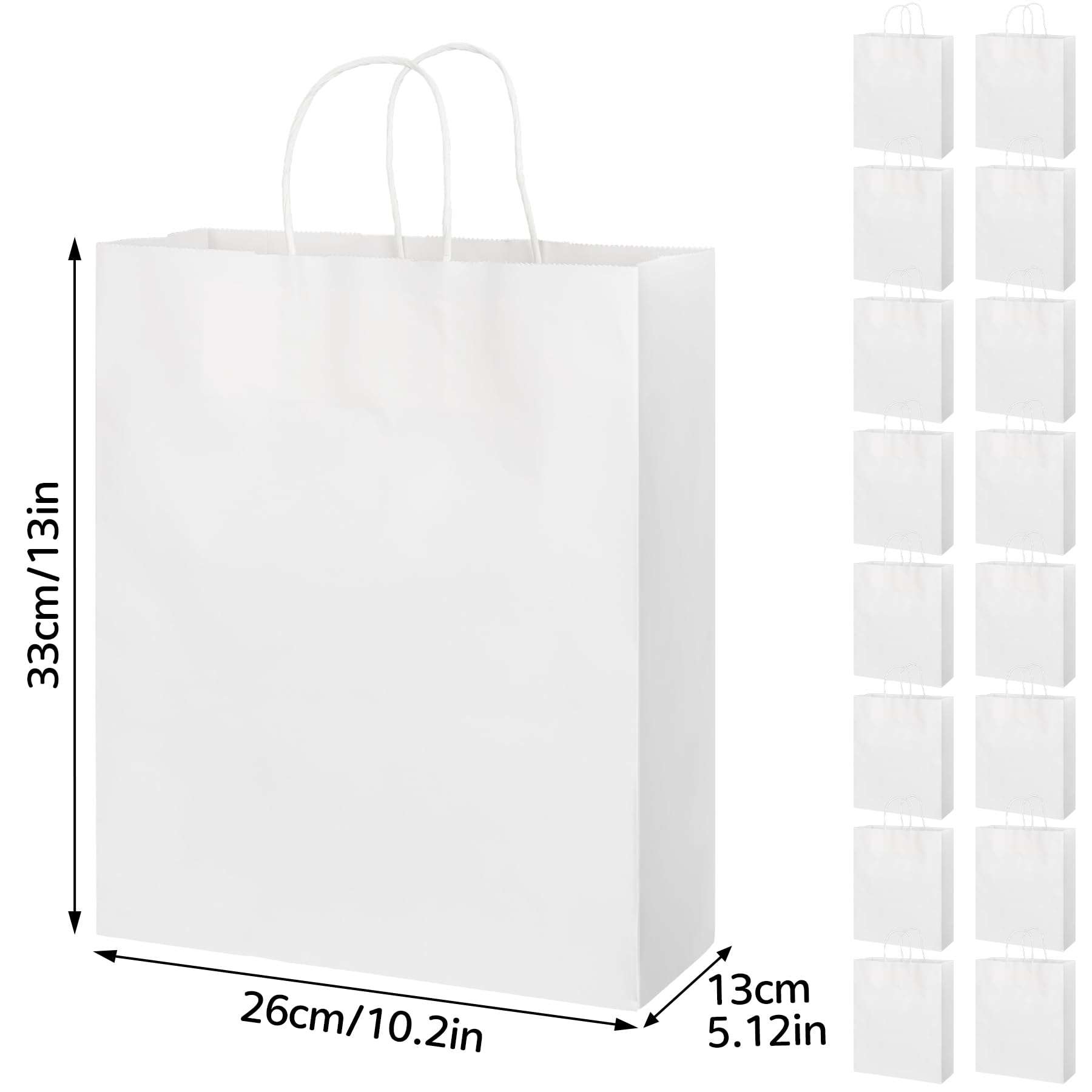 16 Stück große Papiertüten, weißes Kraftpapier, Partytüten, dicke Geschenktüten mit Griffen, perfekt für Kinderpartys, Geburtstage, Babypartys (33 x 26 x 13 cm)