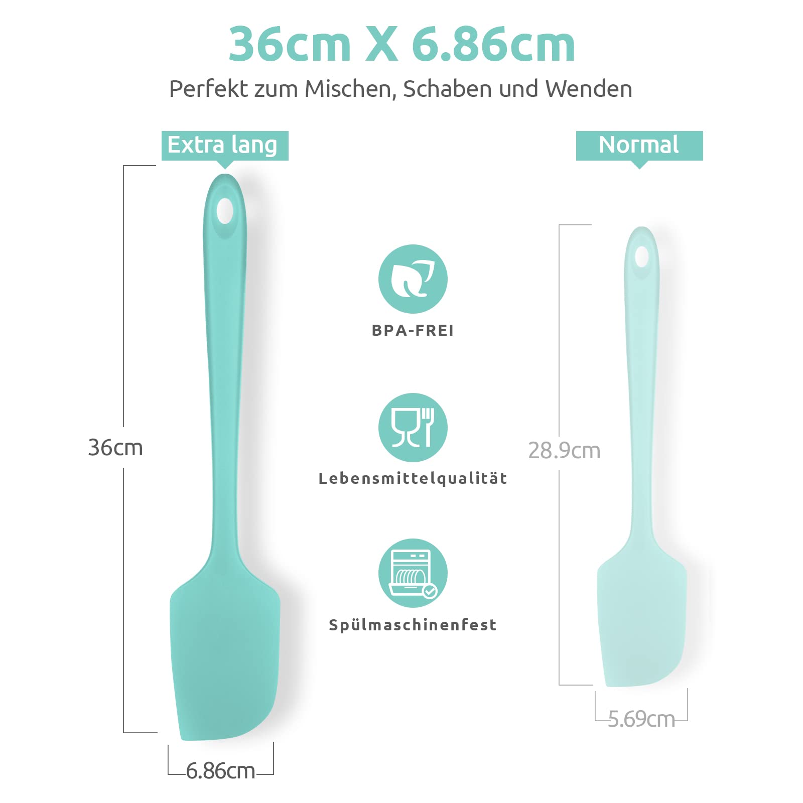 35,6cm Extra Grosser Silikon Spatel: U-Taste 315℃ Hitzebeständiger Langer Flexibler Gummispatel für Schalen & Antihaft-kochgeschirr, Nahtloses Backen Teigschaber für Mischen Schaben Kochen (Aqua Sky)